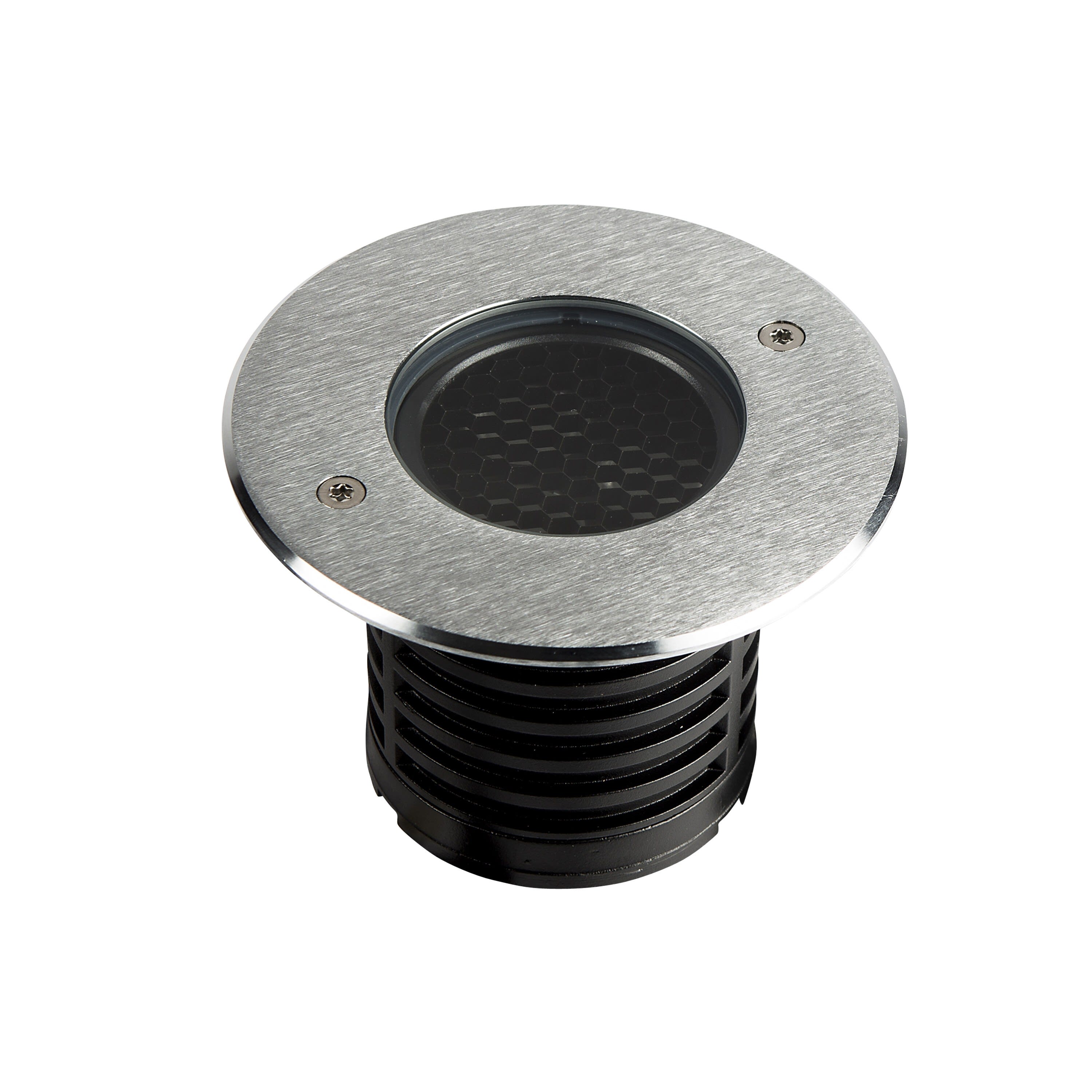 Encastré de sol EUROPOLE ZEPH 2 - 24 rond inox, bleu 3x2W, verre transparent/nid d'abeille basse luminance, angle 30° (éclairage), 24VDC. Classe de protection III, IP67, IK08, câblé de 0,5m avec connectiques rapides IP68 Plug & Play mâle et femelle, HO5RN-F 2x1mm². Durée de vie : 30000h. Dimmable : Oui, variation avec alimentation/contrôleur compatible (non inclus). Dimension collerette : diamètre 116mm. Diamètre d'encastrement : 96mm. Matériau : corps en aluminium/collerette et visserie inox 316L. Traitement de la surface : traitement de la collerette par passivation, corps traité anticorrosion. Résistance environnement : garantie corrosion 15 ans. Températures de fonctionnement : -20°C/+40°C. Walkover : Oui. Driveover : 1500Kg avec pot d'encastrement. Submersible : Non. Diamètre d'encastrement indiqué pour installation sans pot d'encastrement.