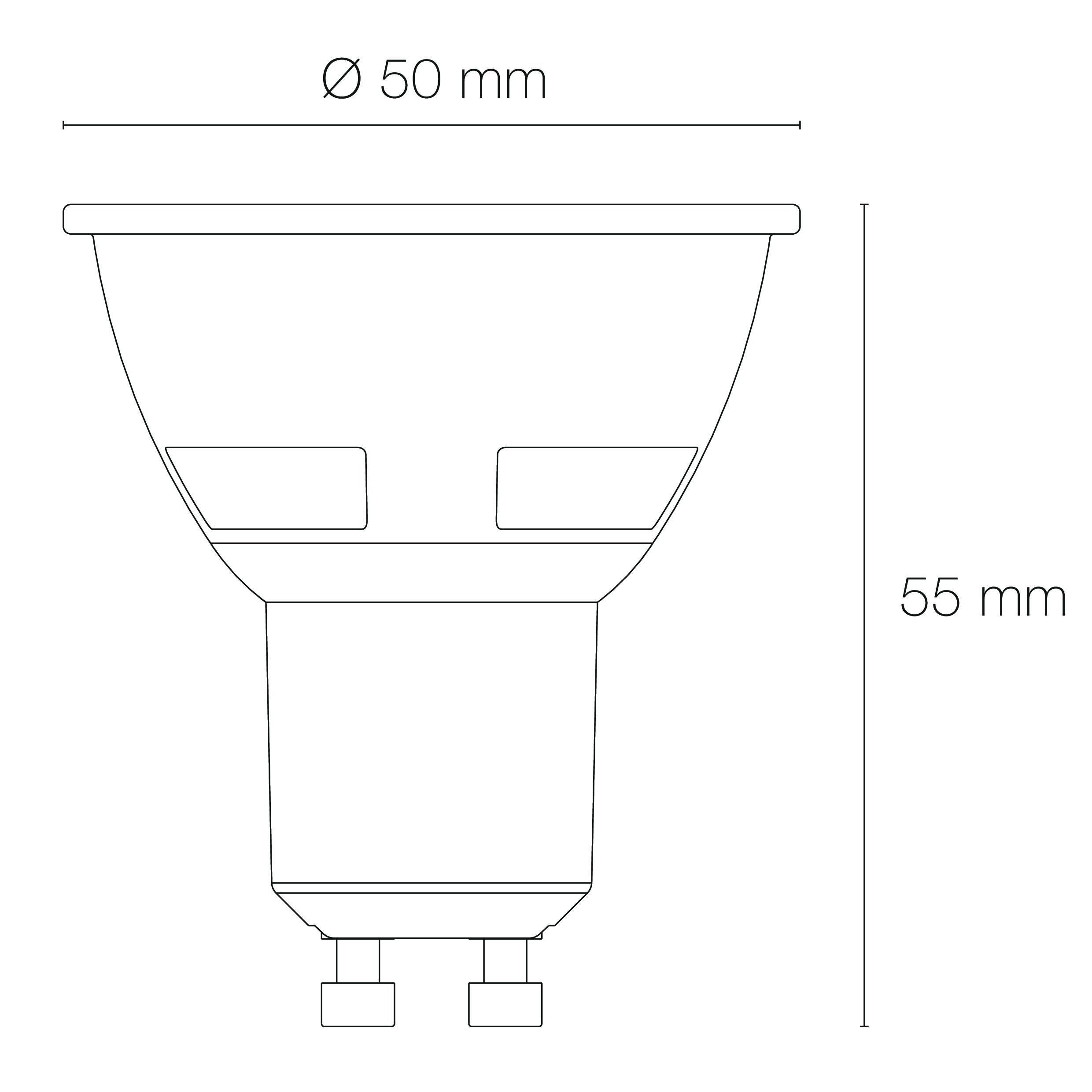LAMPE LED GU10 EUROPOLE blanc 3000K, IRC>80, 5W, 380lm (76lm/W), optique 60°, 230VAC, GU10, classe de protection II. Durée de vie : 20000h. Dimmable : Non.