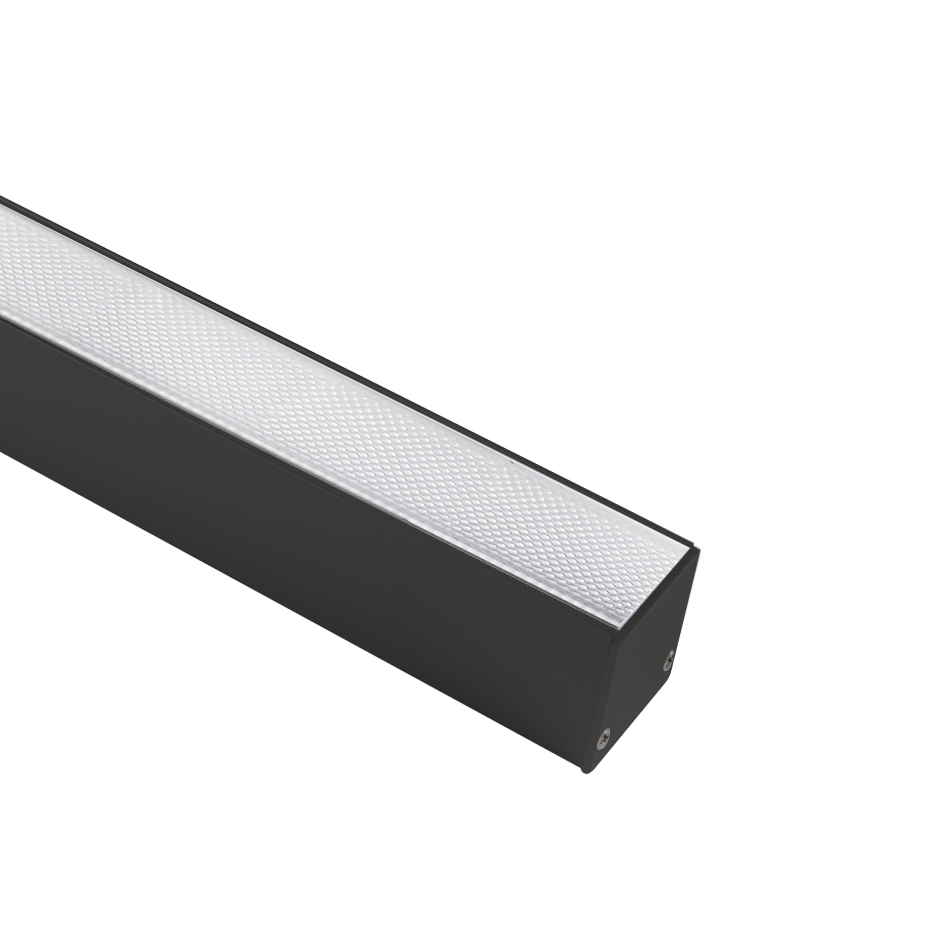 Réglette LED sur-mesure en cm LAZER LED IP20 (Maxi. 3,02m) noir, diffuseur microprismatique, blanc 2400K, IRC95, 12W/m 2400K 575lm/m (48lm/W), 24VDC. Classe III, IP20, câble non fourni : à compléter avec forfait et câble