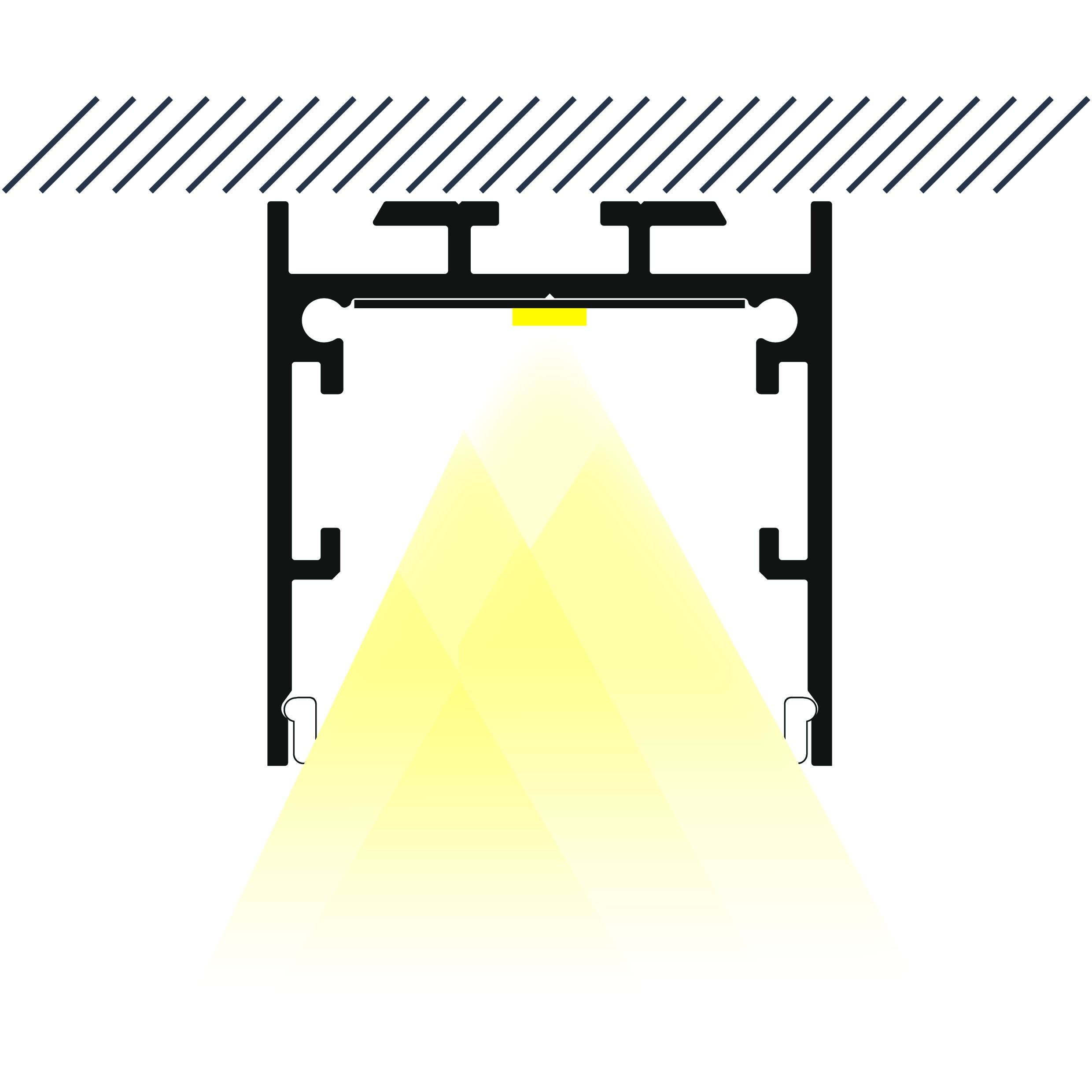 Réglette LED EUROPOLE sur-mesure au centimètre LAZER LED IP20 noir, diffuseur opale, blanc 1900K, IRC90, SDCM3, 19,2W/m, 765lm/m (40lm/W), 160LED/m, optique 120°, 24VDC. Bandeau utilisé : VOLTA PRO 19,2W/m. Classe de protection III, IP20. Compatible volume salle de bain : non. Longueur maximum d'un seul tenant : 3,02m, câble non fourni : à compléter avec références de forfait de câblage et câble, contacter le service clients au 04 72 49 80 49. Dimmable : oui, variation avec alimentation/contrôleur compatible (non inclus). Matériau : aluminium. Durée de vie : 50000h. Températures de fonctionnement : -20°C/+40°C. Mode de pose/installation : saillie/suspension. Installation via clips de fixation, kit de suspensions ou fixations d'encastrement TRIMLESS (non inclus).