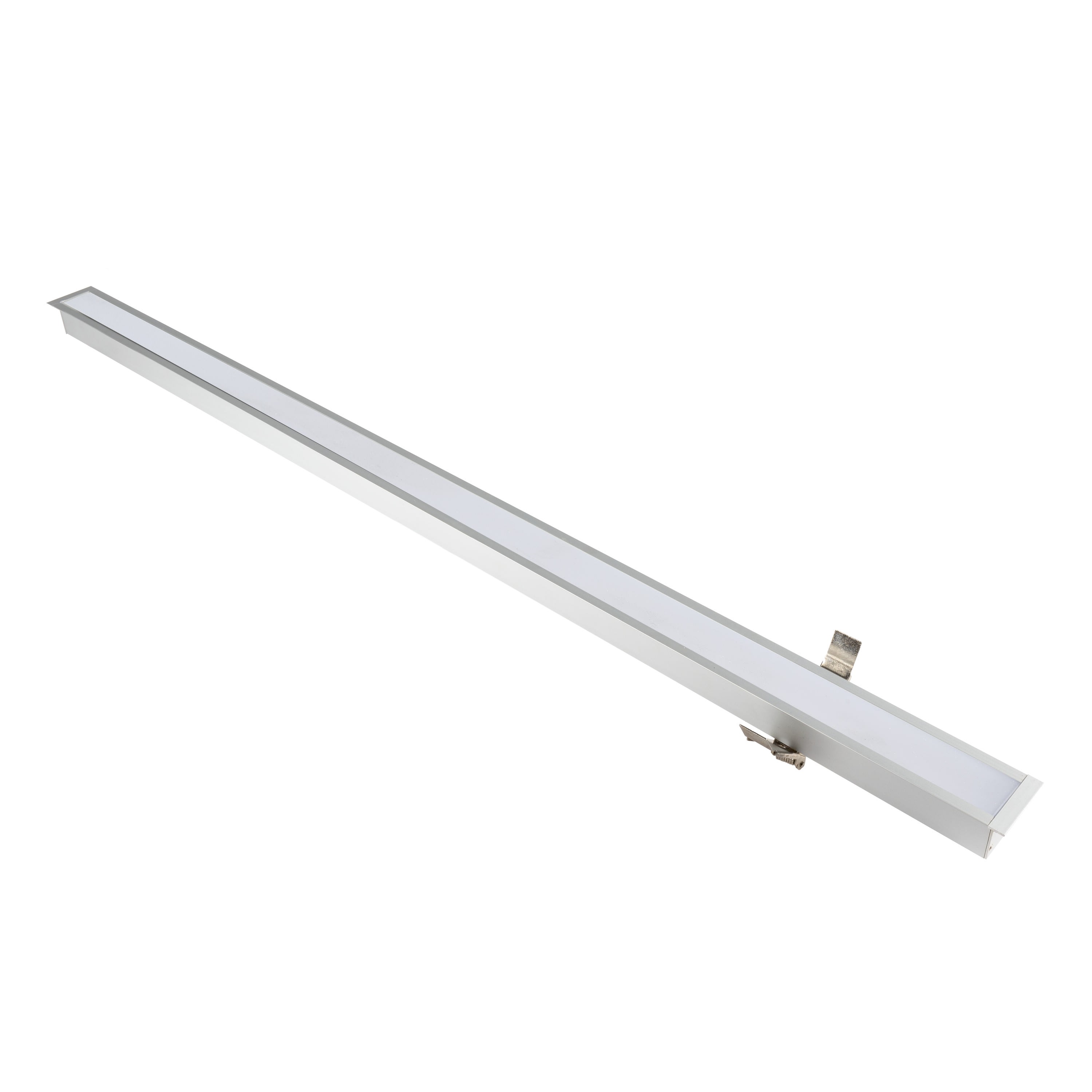 Réglette LED EUROPOLE sur-mesure au centimètre LAZER R LED IP20 aluminium, diffuseur opale, blanc 4000K, IRC90, SDCM3, 19,2W/m, 1476lm/m (77lm/W), 160LED/m, optique 120°, 24VDC. Bandeau utilisé : VOLTA PRO 19,2W/m. Classe de protection III, IP20. Compatible volume salle de bain : non. Longueur maximum d'un seul tenant : 3,02m, câble non fourni : à compléter avec références de forfait de câblage et câble, contacter le service clients au 04 72 49 80 49. Dimmable : oui, variation avec alimentation/contrôleur compatible (non inclus). Matériau : aluminium. Durée de vie : 50000h. Températures de fonctionnement : -20°C/+40°C. Walkover : non. Driveover : non. Mode de pose/installation : encastré. Installation via ressorts de fixation (inclus).