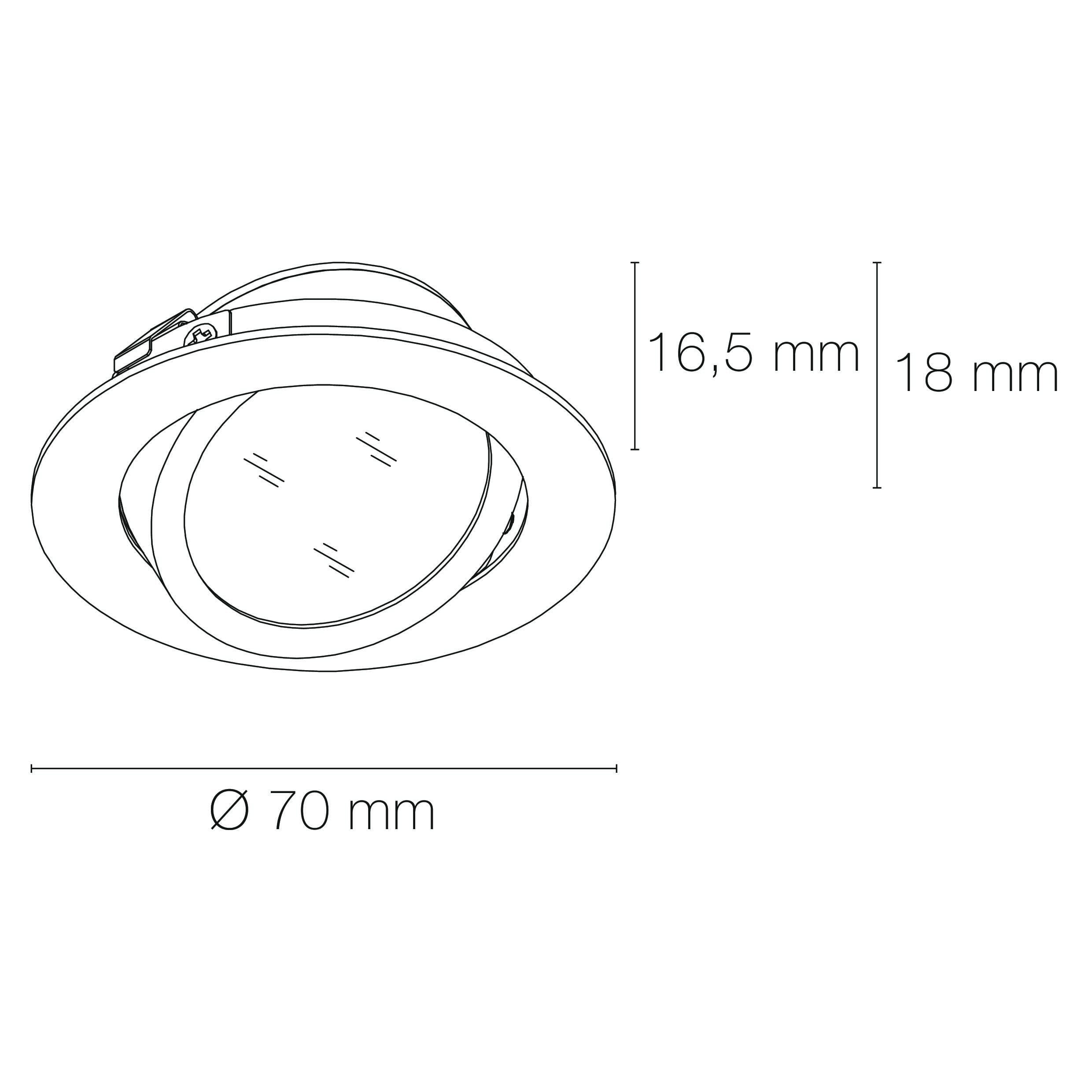 Encastré intérieur Led EUROPOLE LED'UP AGENCEMENT rond orientable, blanc mat (RAL9016), blanc 4000K, IRC>80, 3,5W, 185lm (52,86lm/W), diffuseur opale 120°, 12VDC. Classe de protection III, IP20, compatible volume salle de bain : non, compatible isolants : non. Durée de vie : 30000h. Dimmable : Oui, variation avec alimentation/contrôleur compatible (non inclus). Raccordement rapide : Non. Dimension collerette : diamètre 70mm. Diamètre d'encastrement : 71,5mm.