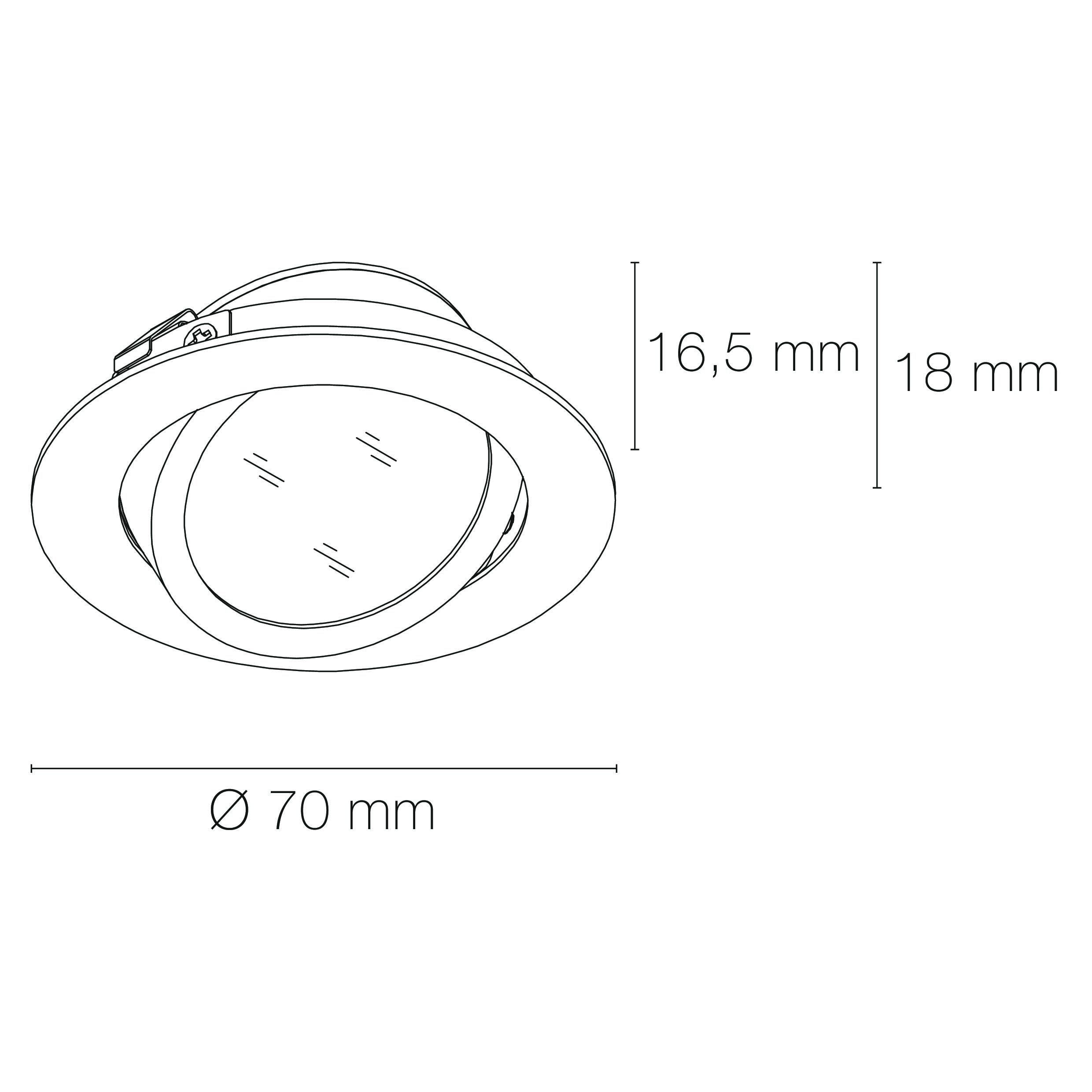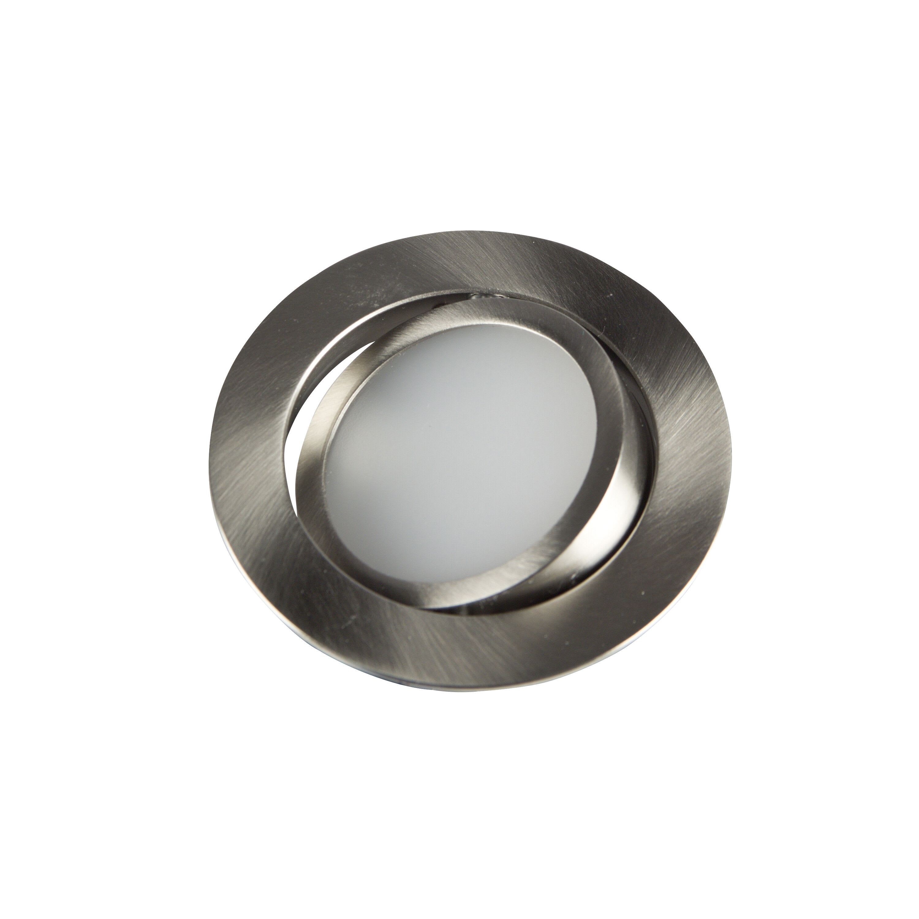 Encastré intérieur Led LED'UP AGENCEMENT rond orientable, inox brossé, blanc 3000K, IRC>80, 3,5W, 155lm, optique 120°, 12VDC. Classe III, IP20, compatible isolants : non. Dimmable.