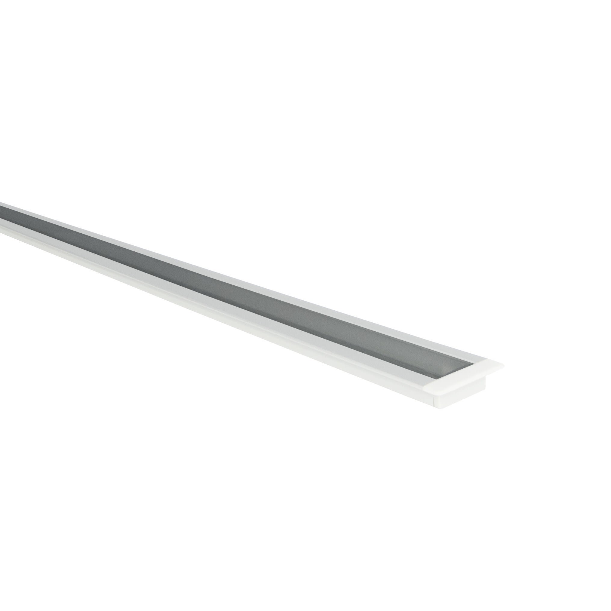 Réglette LED EUROPOLE sur-mesure au centimètre MICRO-NK LED IP20 blanc, diffuseur transparent, blanc 4000K, IRC90, SDCM3, 14,4W/m, 2092lm/m (145lm/W), 160LED/m, optique 120°, 24VDC. Bandeau utilisé : VOLTA PRO 14,4W/m. Classe de protection III, IP20. Compatible volume salle de bain : non. Longueur maximum d'un seul tenant : 3,01m, câble non fourni : à compléter avec références de forfait de câblage et câble, contacter le service clients au 04 72 49 80 49. Dimmable : oui, variation avec alimentation/contrôleur compatible (non inclus). Matériau : aluminium. Durée de vie : 50000h. Températures de fonctionnement : -20°C/+40°C. Walkover : non. Driveover : non. Mode de pose/installation : encastré. Installation dans profil aluminium d'encastrement carrelage ou via clips de fixation (non inclus).