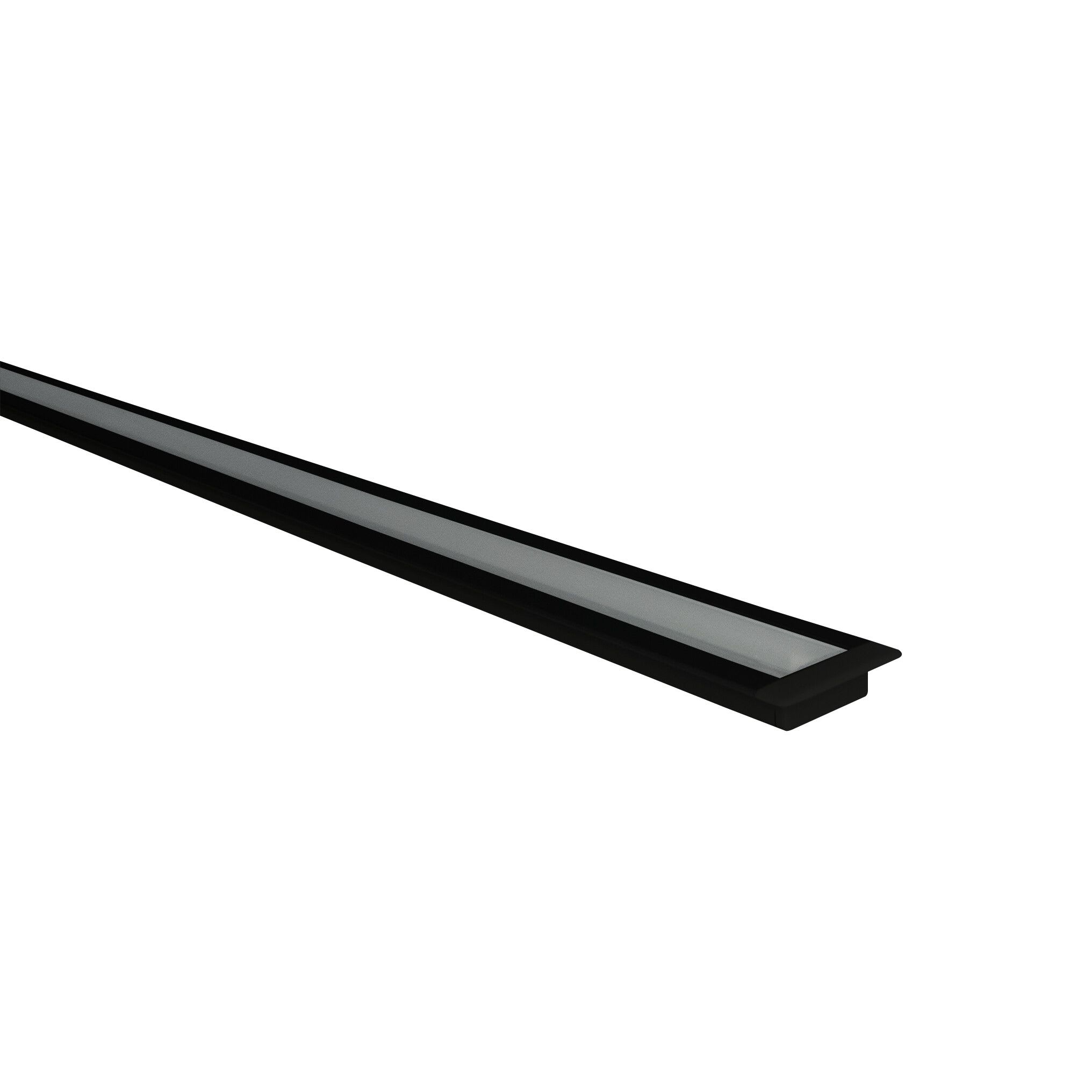 Réglette LED EUROPOLE sur-mesure au centimètre MICRO-NK LED IP20 noir, diffuseur transparent symétrique, COOL PERF blanc 2400K, IRC90, SDCM3, 9,6W/m, 1117lm/m (116lm/W), 128LED/m, optique 120°, 24VDC. Classe de protection III, IP20, compatible volume sall