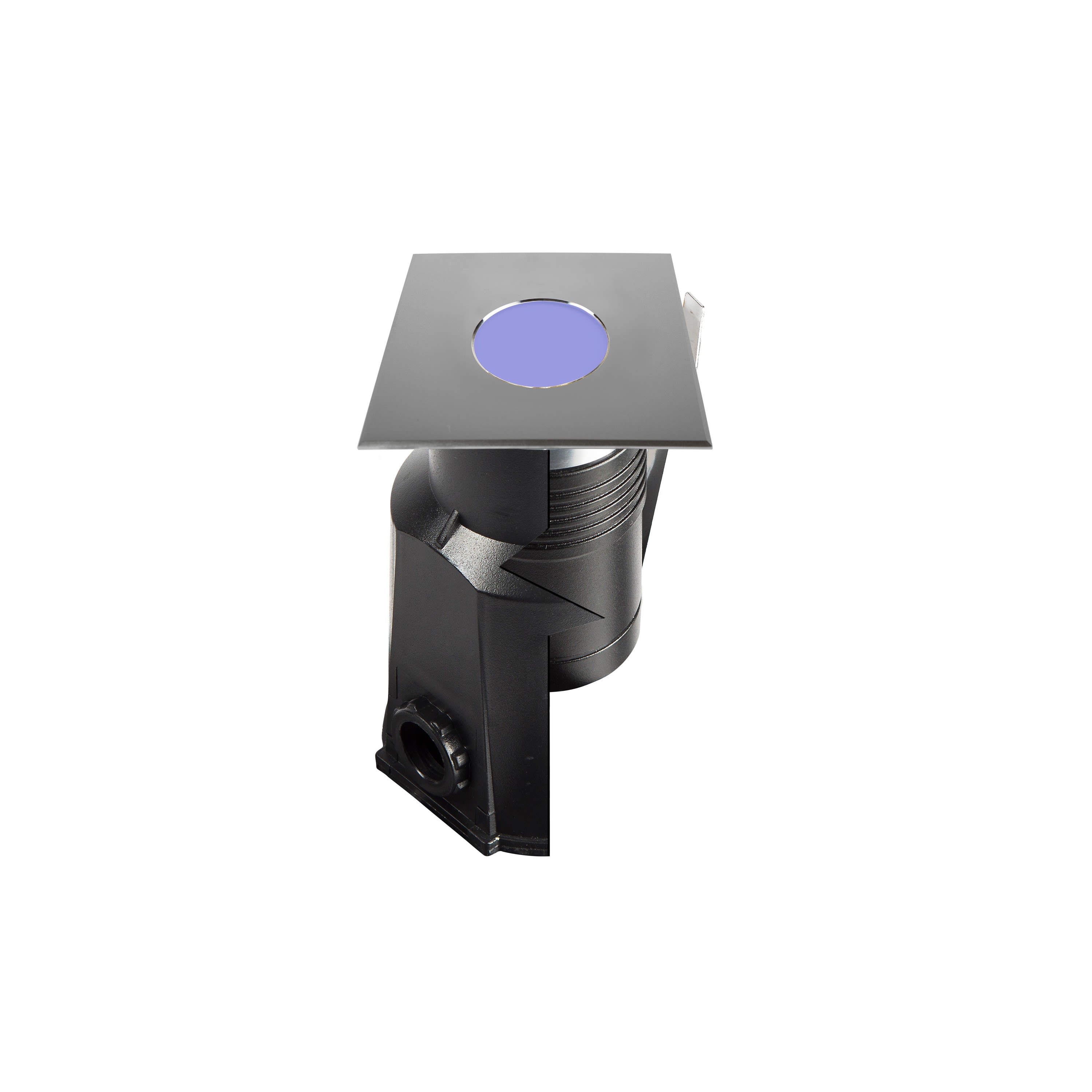 Encastré de sol MINI ZEPH - 230 carré : 48x48mm, inox, bleu 0,5W, verre opale, 120° (balisage), 230VAC. Classe I, IP67. IK06. Non dimmable