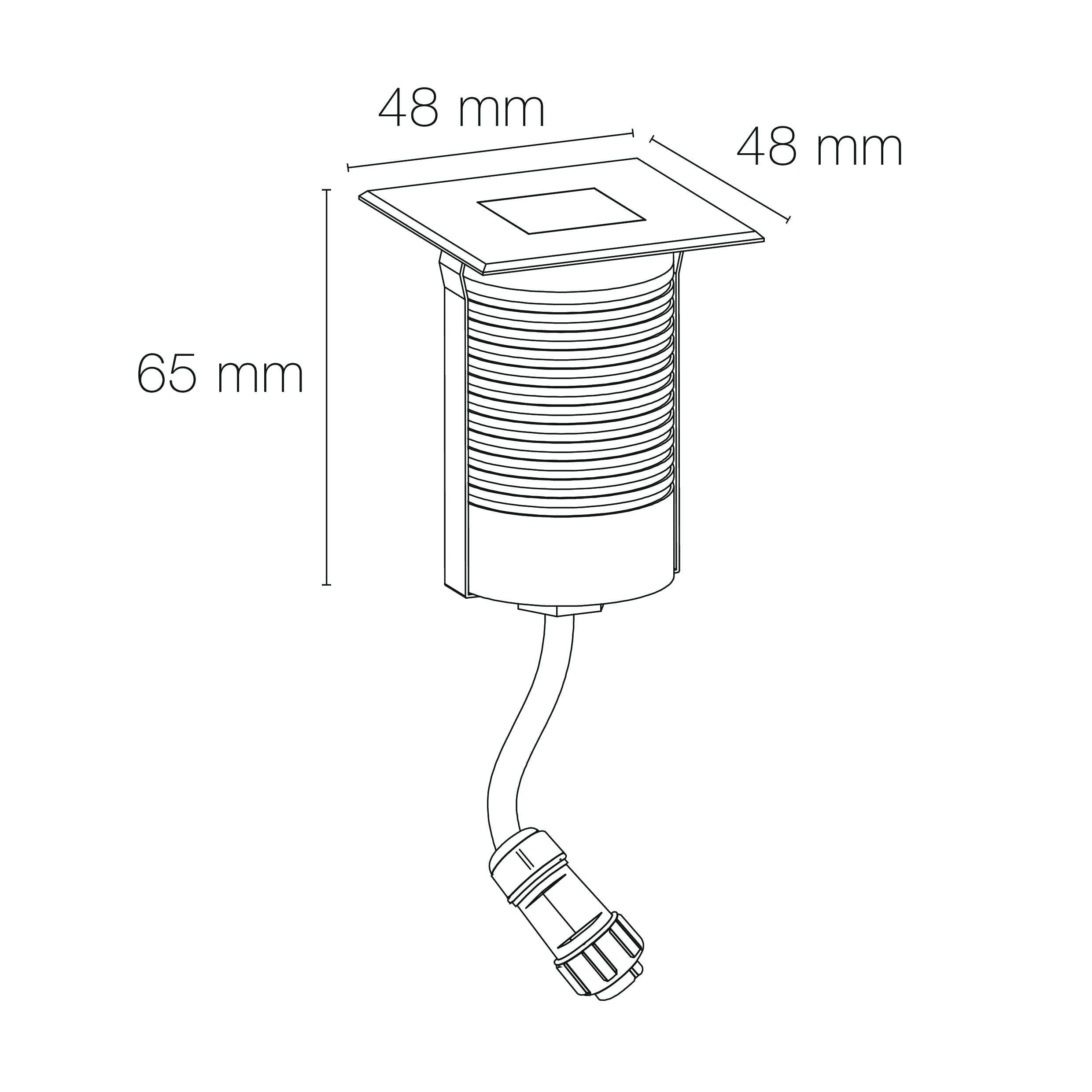 Encastré de sol EUROPOLE MINI ZEPH - 230 carré inox, bleu 0,5W, verre opale, angle 120° (balisage), 230VAC. Classe de protection I, IP67, IK06, câblé de 0,5m avec connectiques rapides IP68 Plug & Play mâle et femelle, HO5RN-F 3x1mm². Durée de vie : 30000h. Dimmable : Non. Dimension collerette : 48x48mm. Diamètre d'encastrement : 38mm. Matériau : corps en aluminium/collerette et visserie inox 316L. Traitement de la surface : traitement de la collerette par passivation, corps traité anticorrosion. Résistance environnement : garantie corrosion 15 ans. Températures de fonctionnement : -20°C/+40°C. Walkover : Oui. Driveover : Non. Submersible : Non. Diamètre d'encastrement indiqué pour installation sans pot d'encastrement. Alimentation déportée incluse.