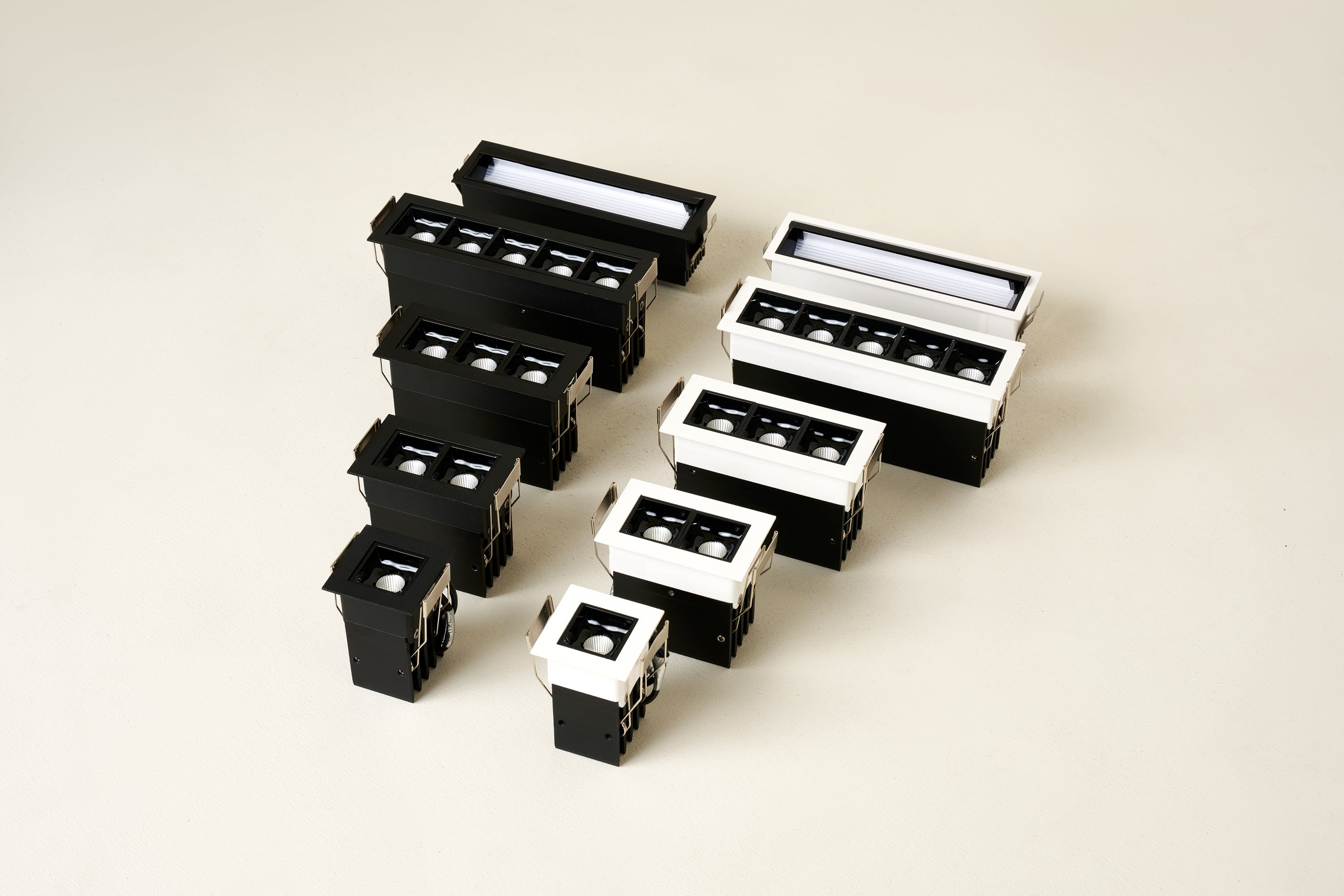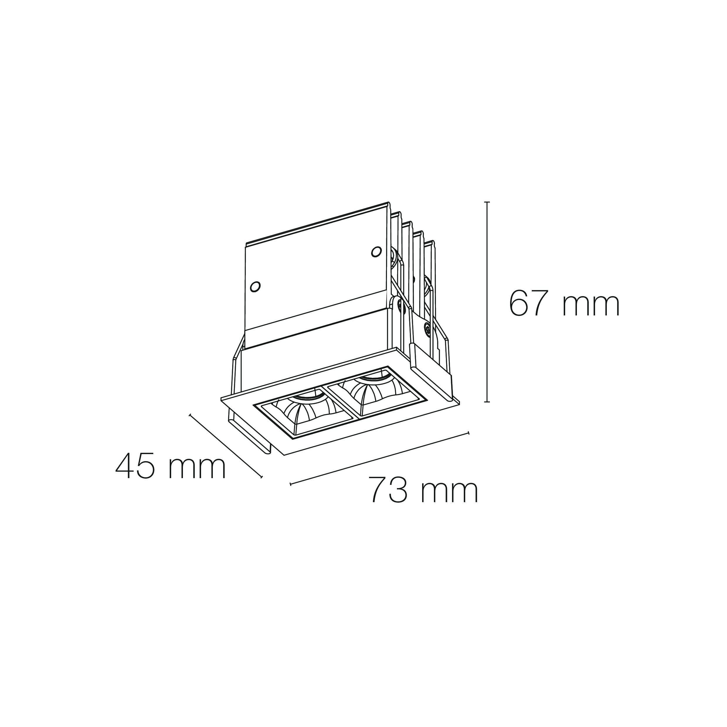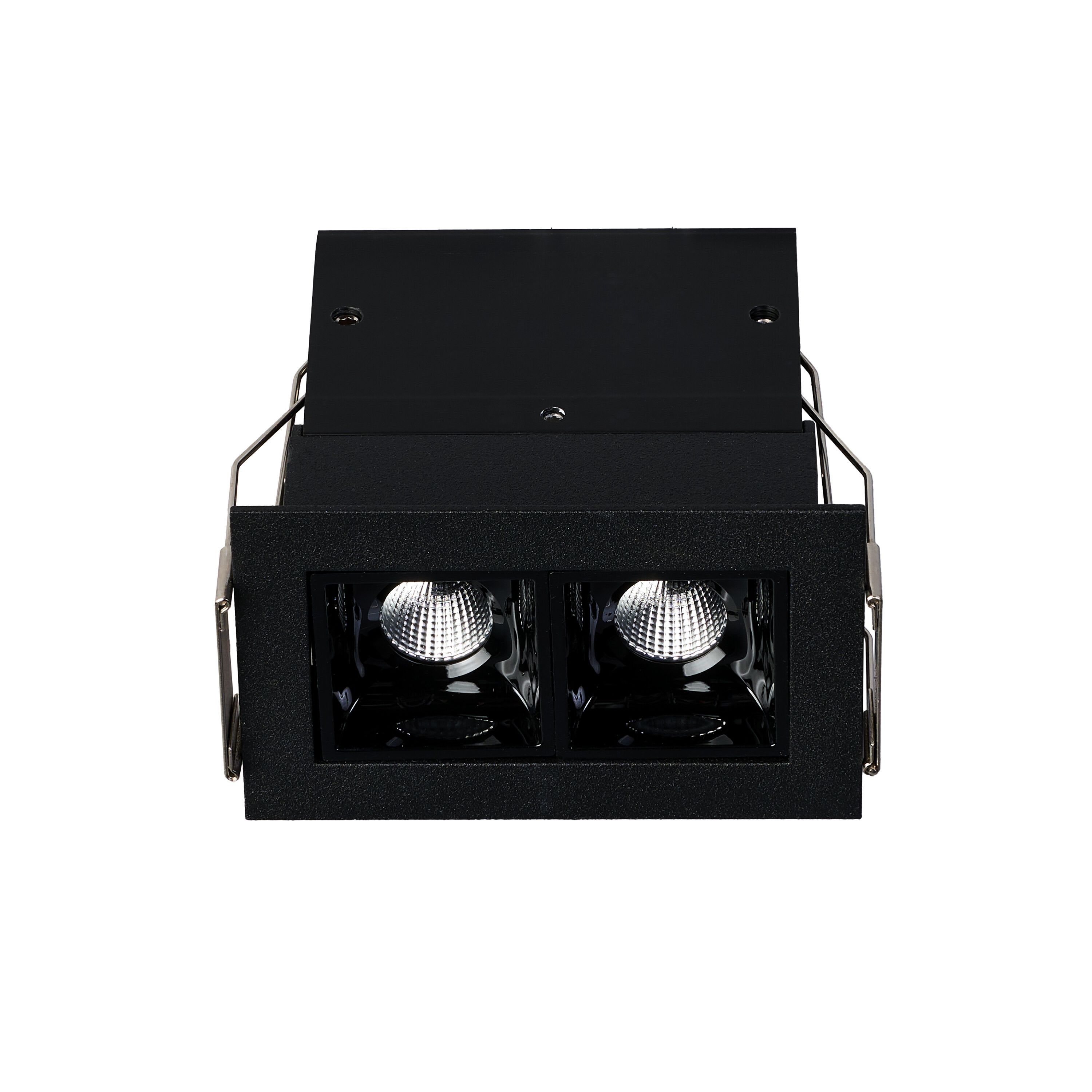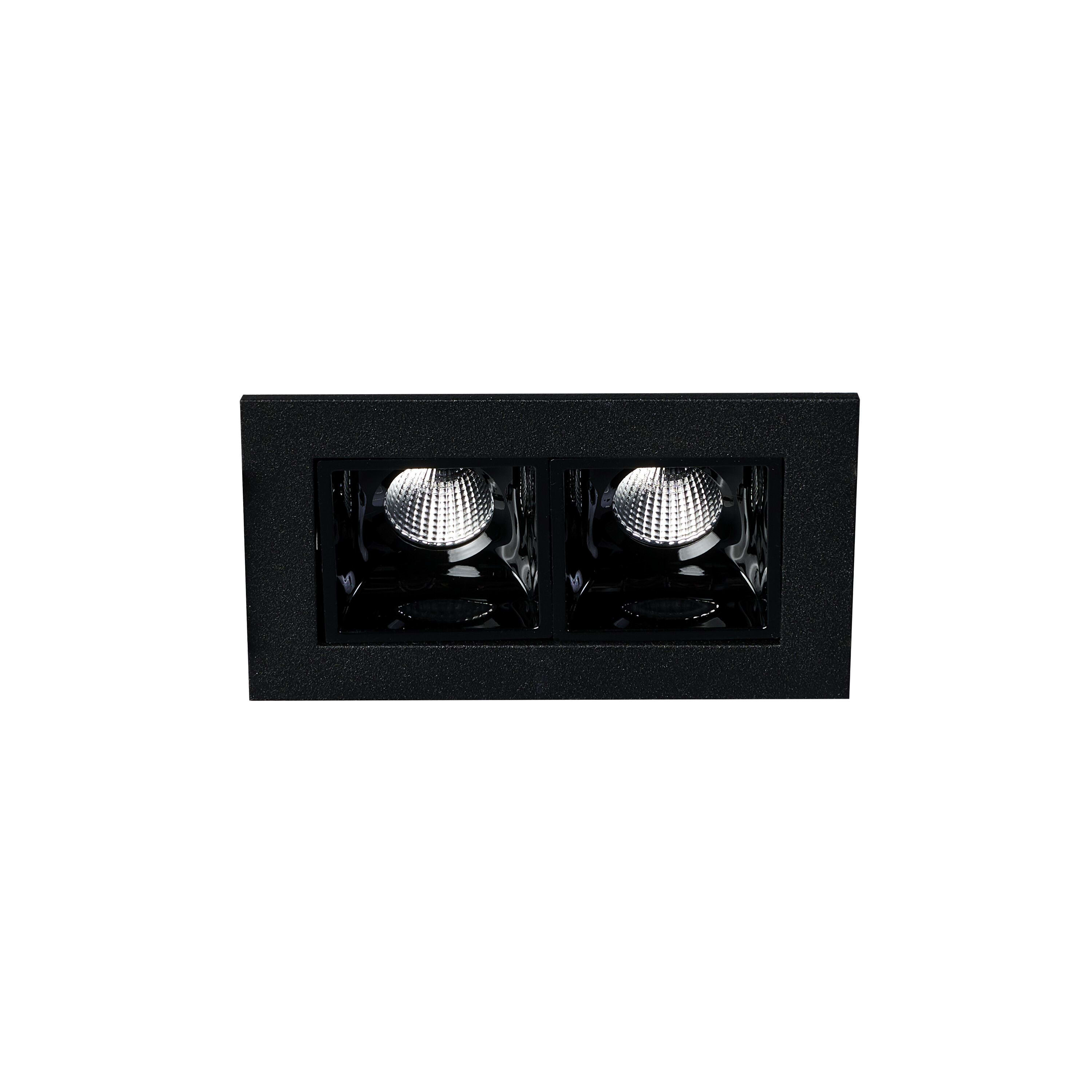 Encastré intérieur Led EUROPOLE NELIO 2 rectangle fixe, noir mat (RAL9005), blanc 3000K, IRC>90, 12,7W, 1120lm (88 lm/W), optique faible éblouissement 44°, 230VAC/37VDC. Classe de protection II/III, IP20, compatible volume salle de bain : non, RE2020, compatible isolants : non. Durée de vie : 40000h. Dimmable : non. Raccordement rapide : bornier à repiquage. Dimension collerette : 73x45mm. Alimentation déportée incluse.