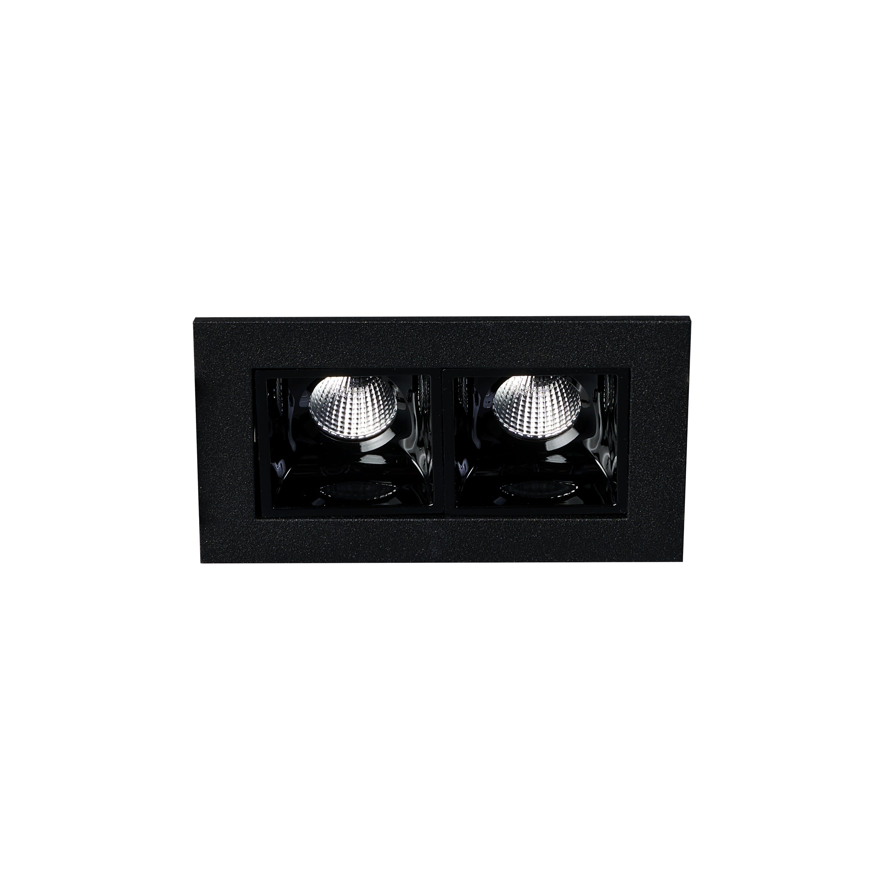 Encastré intérieur Led EUROPOLE NELIO 2 rectangle fixe, noir mat (RAL9005), blanc 4000K, IRC>90, 12,7W, 1197lm (94 lm/W), optique faible éblouissement 44°, 230VAC/37VDC. Classe de protection II/III, IP20, compatible volume salle de bain : non, RE2020, compatible isolants : non. Durée de vie : 40000h. Dimmable : non. Raccordement rapide : bornier à repiquage. Dimension collerette : 73x45mm. Alimentation déportée incluse.