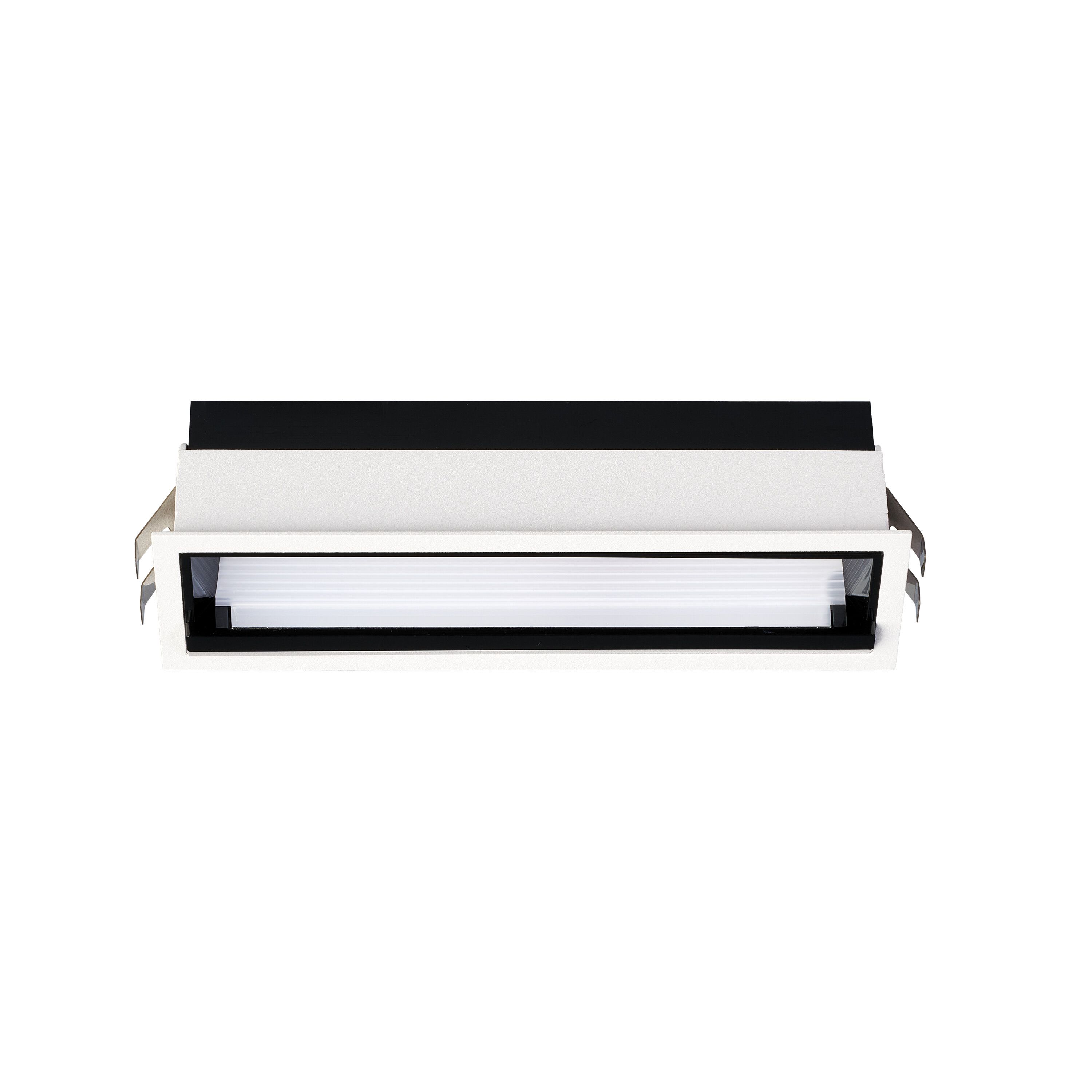 Encastré intérieur Led EUROPOLE NELIO WALL WASHER rectangle fixe, blanc mat (RAL9003), blanc 3000K, IRC>90, 11,2W, 568lm (51 lm/W), diffuseur asymétrique opale/optique asymétrique faible éblouissement 100°x60°, 230VAC/30VDC. Classe de protection II/III, IP20, compatible volume salle de bain : non, RE2020, compatible isolants : non. Durée de vie : 40000h. Dimmable : non. Raccordement rapide : bornier à repiquage. Dimension collerette : 142x40mm. Alimentation déportée incluse.