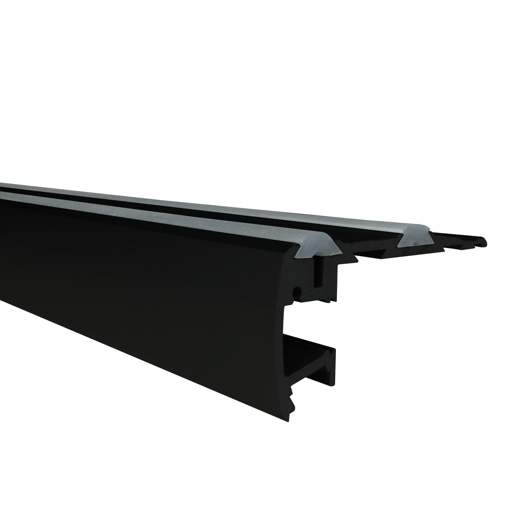 Profil STEP noir mat 1m. Walkover : Oui. Driveover : non. Mode de pose/installation : nez de marche. Type de fixation : se visse sur le support