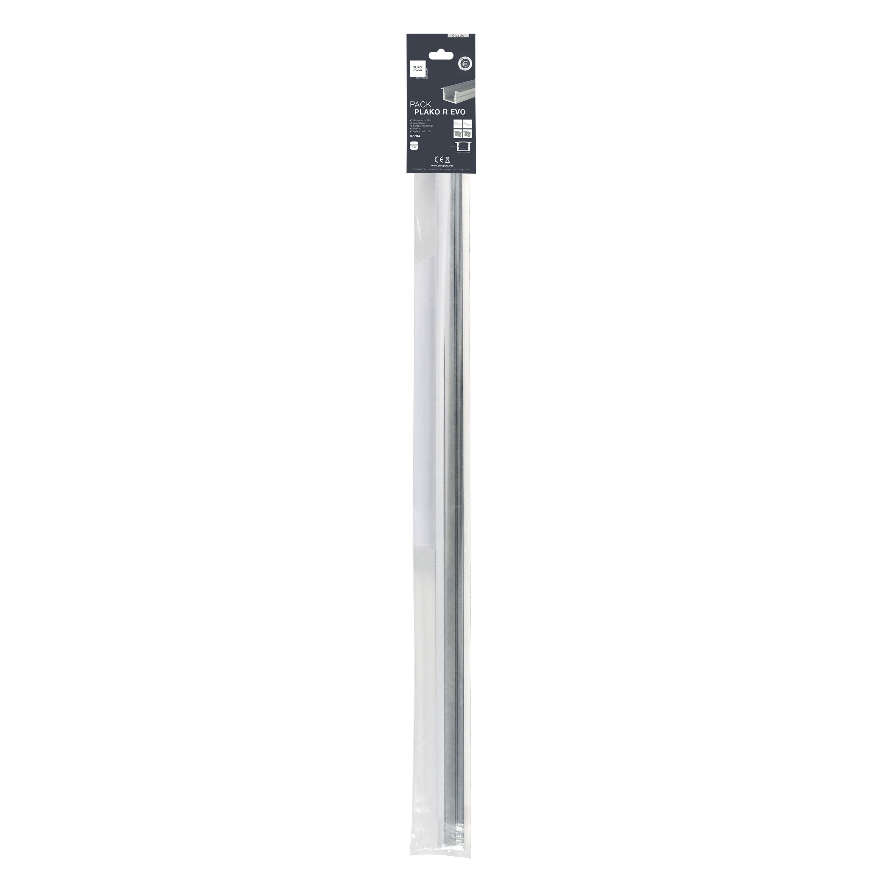 Pack profils 1m PLAKO R EVO aluminium, diffuseurs opales et transparents en polycarbonate. Le pack comprend 5 profils de 1m, 5 diffuseurs opales, 5 diffuseurs transparents et 10 embouts de finition.