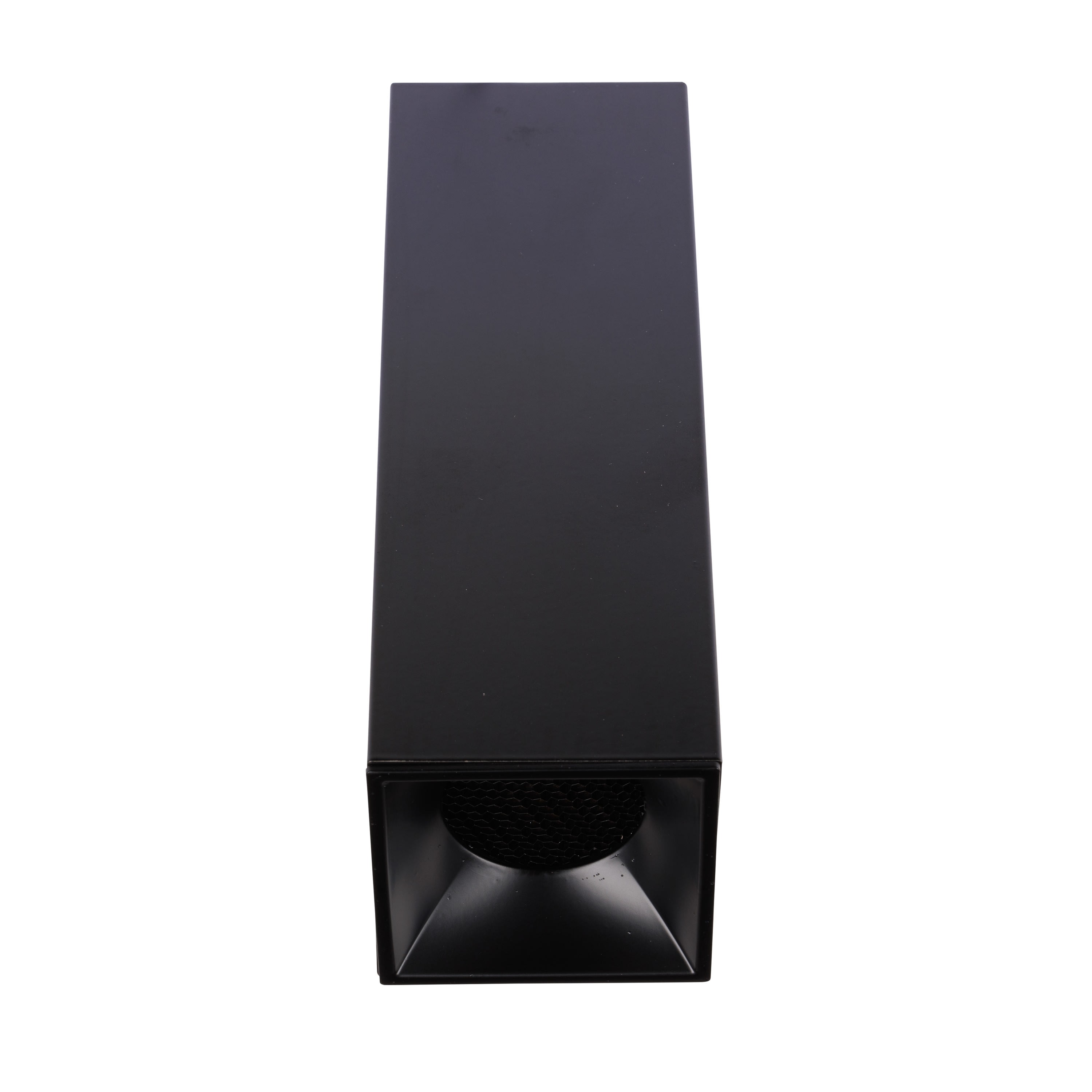 Plafonnier EUROPOLE ANOVI UNIVERSAL BOXE LED, hauteur : 20cm carré noir mat. Monté avec WiZ Pro (douille GU10), TW 2700K-6500K 4,7W 345lm (73lm/W), IRC>90 SDCM5, nid d'abeille basse luminance 36°, 230VAC. Durée de vie : 15000h. Dimmable : oui, variation sans fil via application WiZ. Classe de protection II, IP20, câblé de 100mm, H05S-K. Mode de pose/installation : saillie. Compatible isolant(s) : non. Dimension : 66x66mm. Type de fixation : se visse sur le support. Matériau : aluminium. Températures de fonctionnement : -20°C/+40°C. Installation sous plafond béton-brique-hourdis. S'adapte à vos envies grâce à sa déclinaison d'accessoires : de multiples possibilités de finitions d'anneaux.