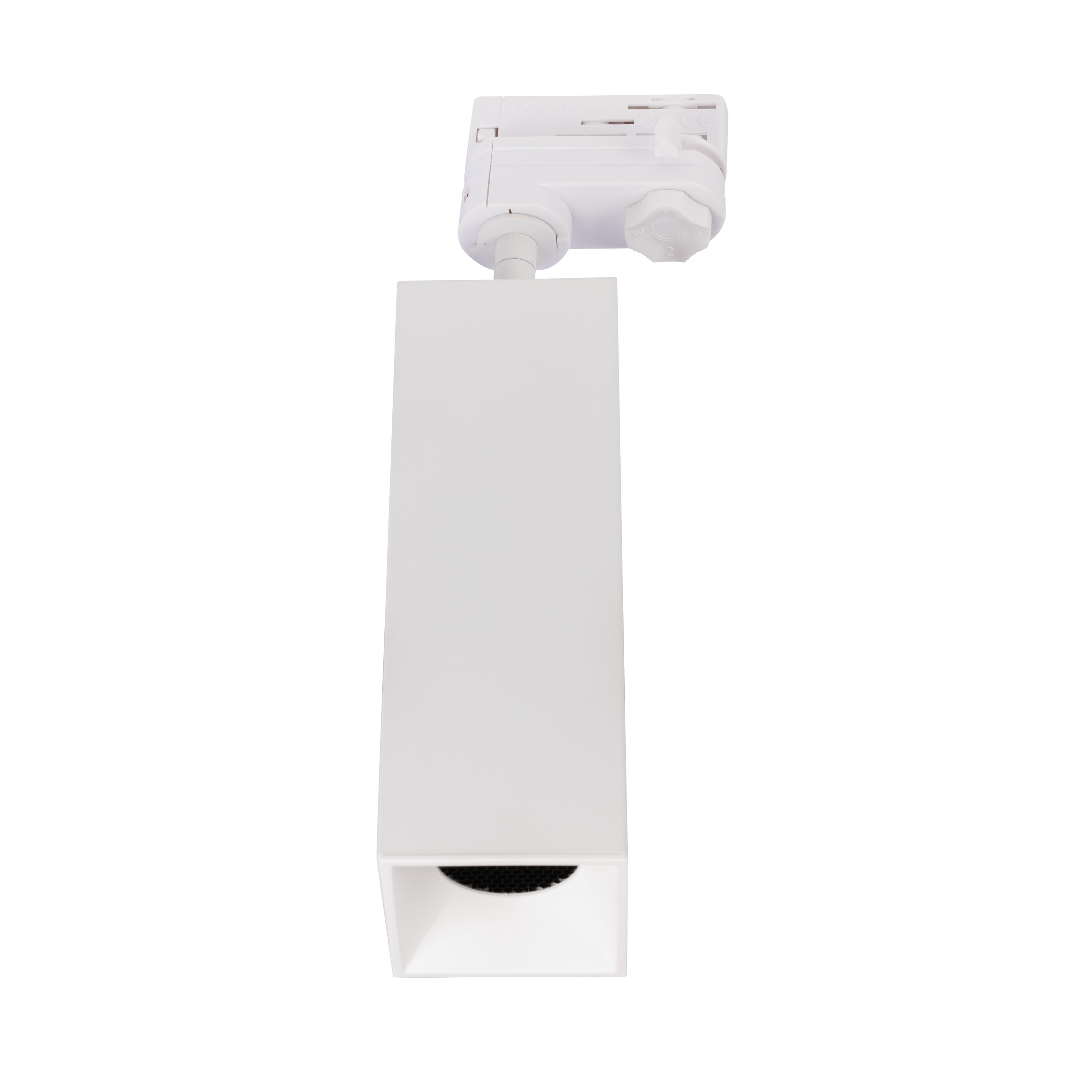Plafonnier ANOVI UNIVERSAL BOXE RAIL LED carré blanc mat. Monté avec LED'UP UNIVERSAL SWITCH blanc 2700K/3000K/4000K, IRC90, 6W, 500/525/600lm (88lm/W), nid d'abeille basse luminance 60°, 230VAC/27VDC. Durée de vie : 35000h. Dimmable : Oui, variation TRIAC. Classe de protection II/III, IP20, adaptateur pour rail triphasé, H05S-K. Mode de pose/installation : sur rail triphasé. Dimension : 66x66mm. Type de fixation : se visse sur le support. Matériau : aluminium. Températures de fonctionnement : -20°C/+40°C. Installation sous faux-plafond/sous plafond béton-brique-hourdis. S'adapte à vos envies grâce à sa déclinaison d'accessoires : de multiples possibilités de finitions d'anneaux.