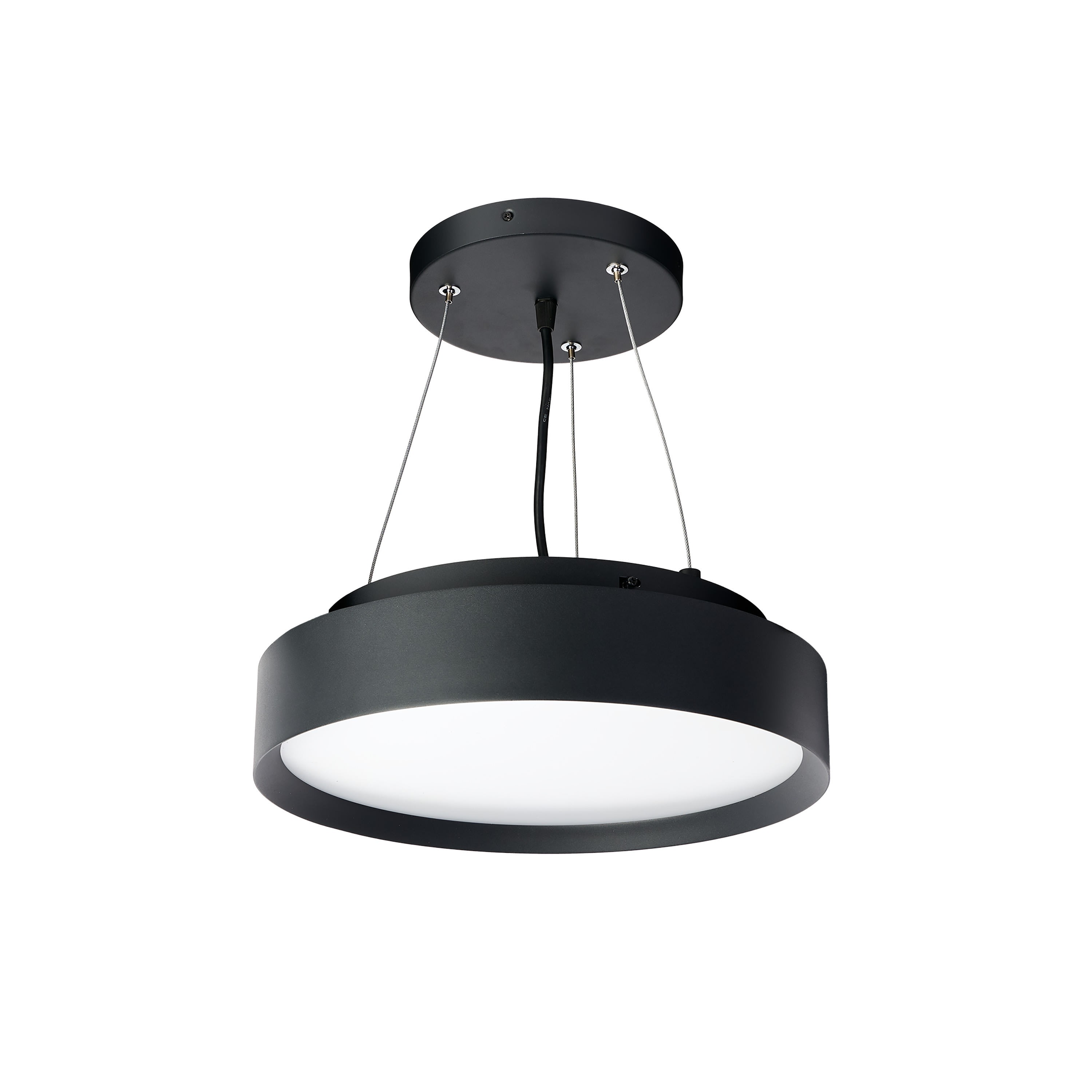 Plafonnier EUROPOLE MILA 1, diamètre : 35cm rond noir mat finition sablé, blanc 4000K 30W 3150lm (105lm/W), IRC90 SDCM3, diffuseur opale 120°, 230VAC. Durée de vie : 50000h. Dimmable : Non. Classe de protection I, IP20, câblé de 2m, H05SS-F 3x0,75mm². Mode de pose/installation : saillie. Compatible isolant(s) : non. Type de fixation : embase à visser sur le support - 1/4 de tour. Matériau : aluminium. Températures de fonctionnement : -10°C/+40°C. Alimentation incluse dans l'appareil, montage en suspension avec le kit de suspension. Autres finitions, puissances, températures de couleur et diffuseur microprismatique sur demande.