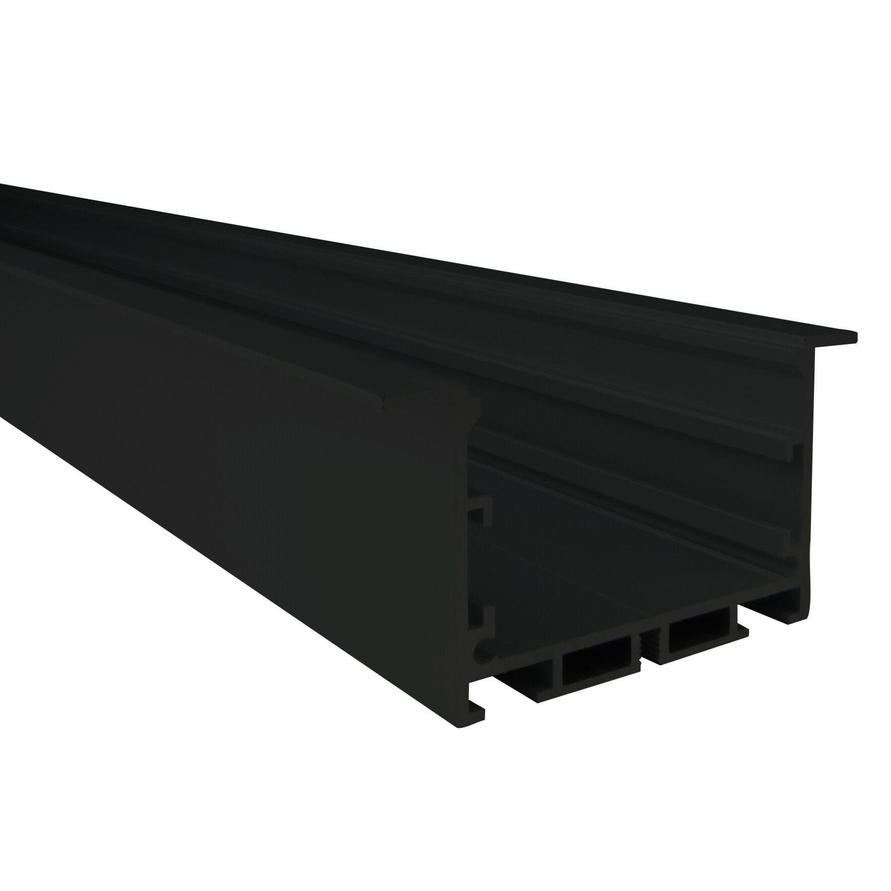 Profil LAZER L-R noir mat 1m. Mode de pose/installation : encastré. Type de fixation : ressorts de fixation. Permet le maintien et la dissipation thermique des bandeaux LED.