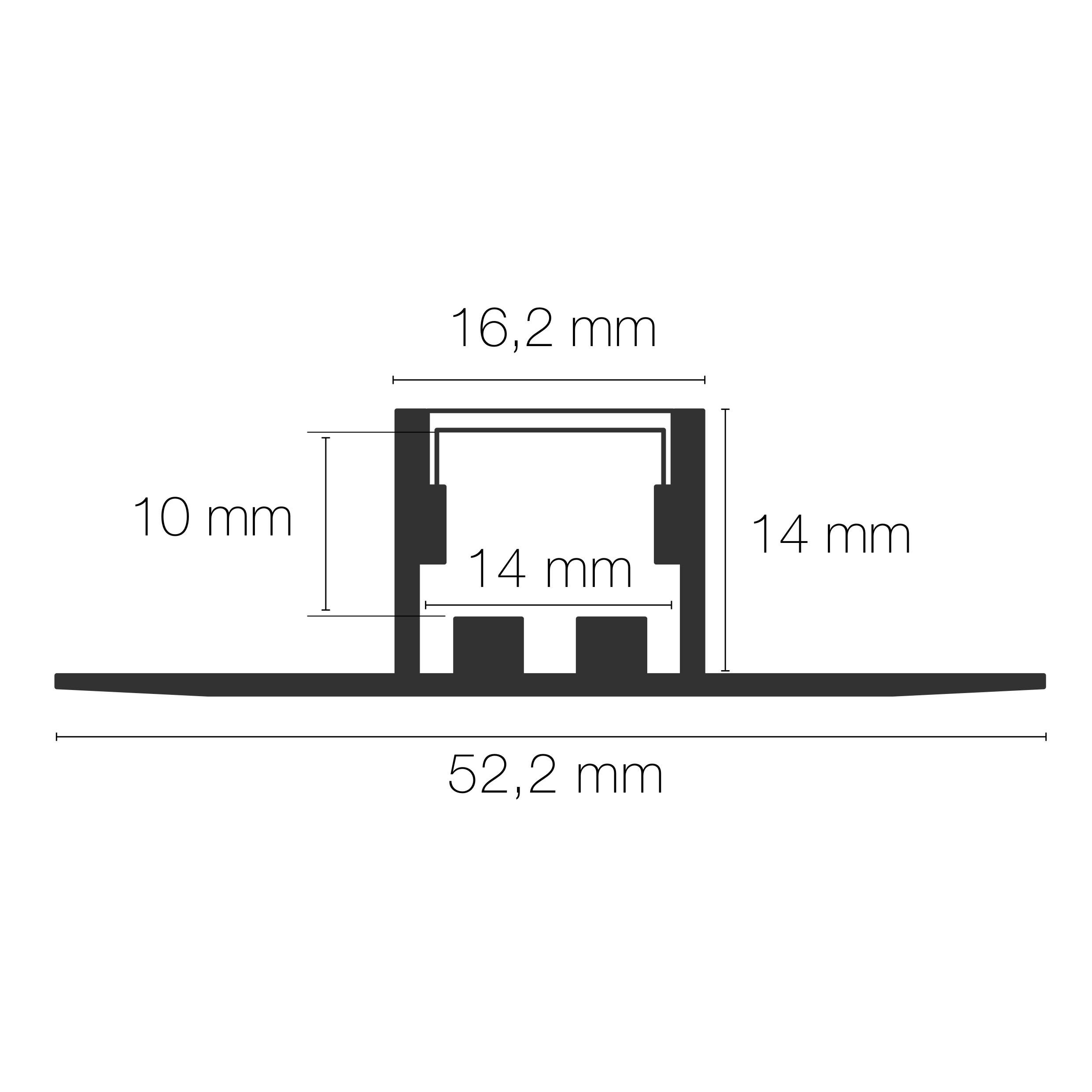 Profil PDS-T aluminium mat sur-mesure. Longueur maximum : 3,01m. Walkover : Non. Driveover : Non. Mode de pose/installation : encastré. Type de fixation : se visse sur le support.