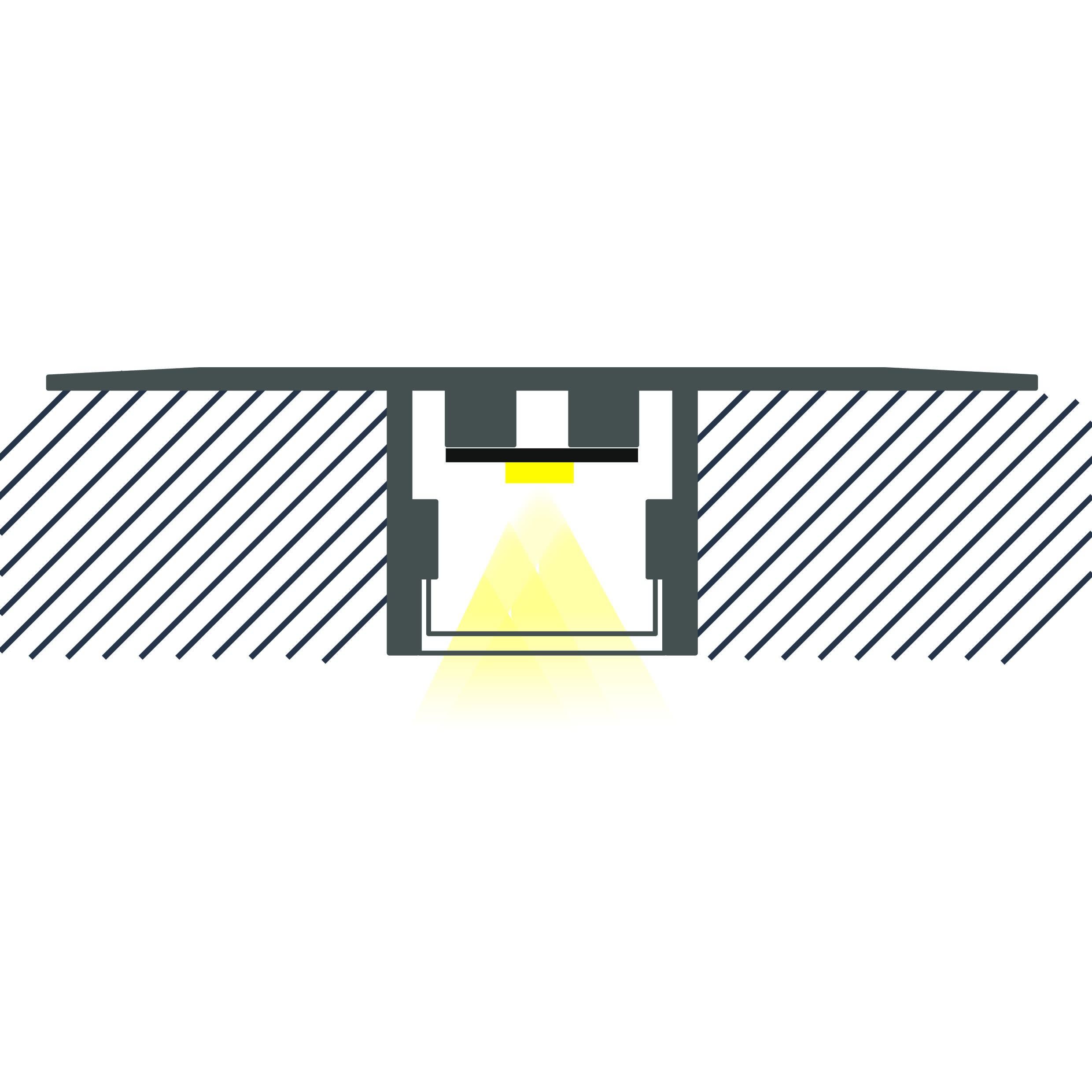Profil EUROPOLE sur-mesure PDS-T, couleur : aluminium mat, matériau : aluminium, traitement de la surface : sans traitement. Longueur maximum : 3,01m. Walkover : Non. Driveover : Non. Mode de pose/installation : encastré. Type de fixation : se visse sur le support. Assemblage avec diffuseur et embouts de finition, installation avec vis dans doublage en plaque de plâtre. Pour installation des bandeaux LED.