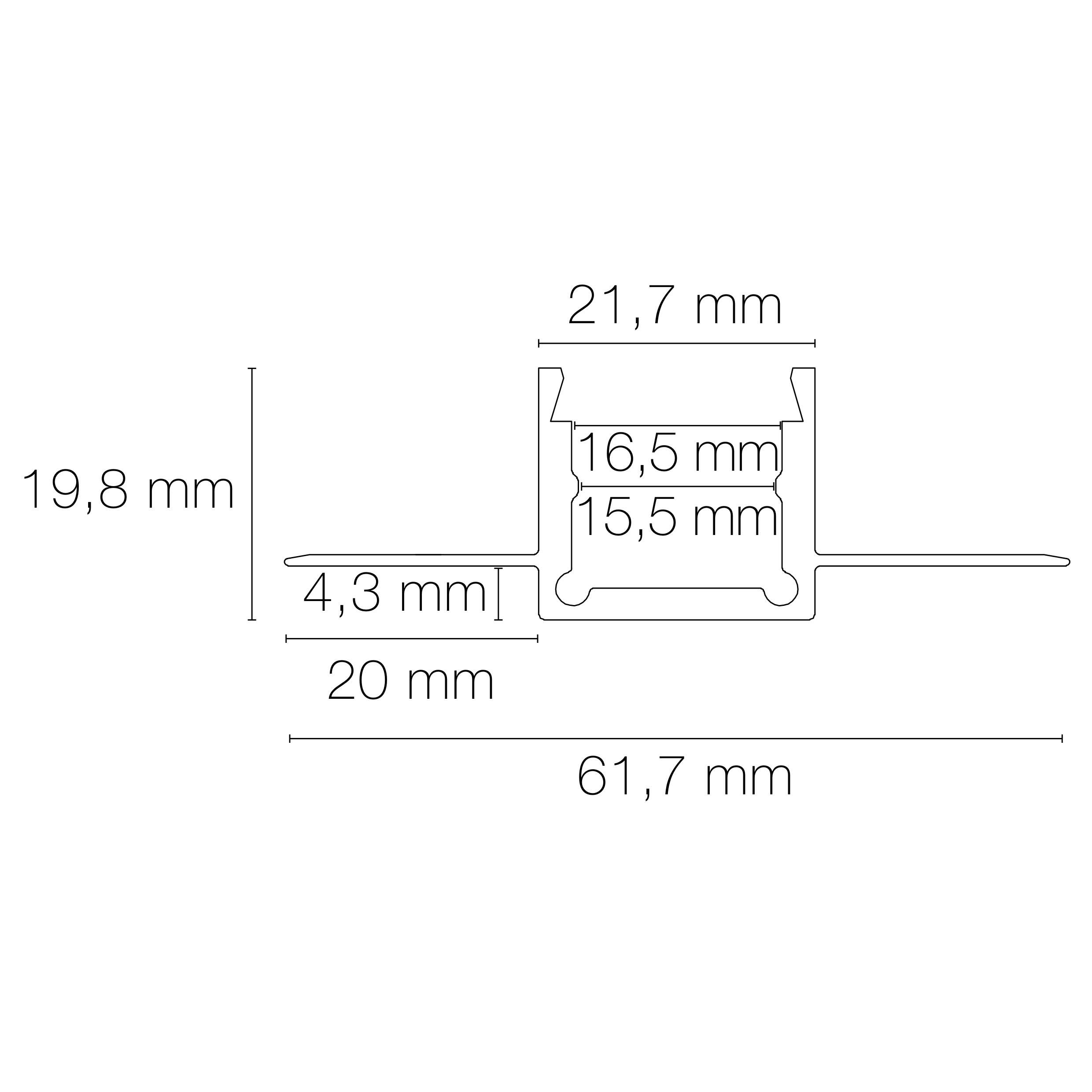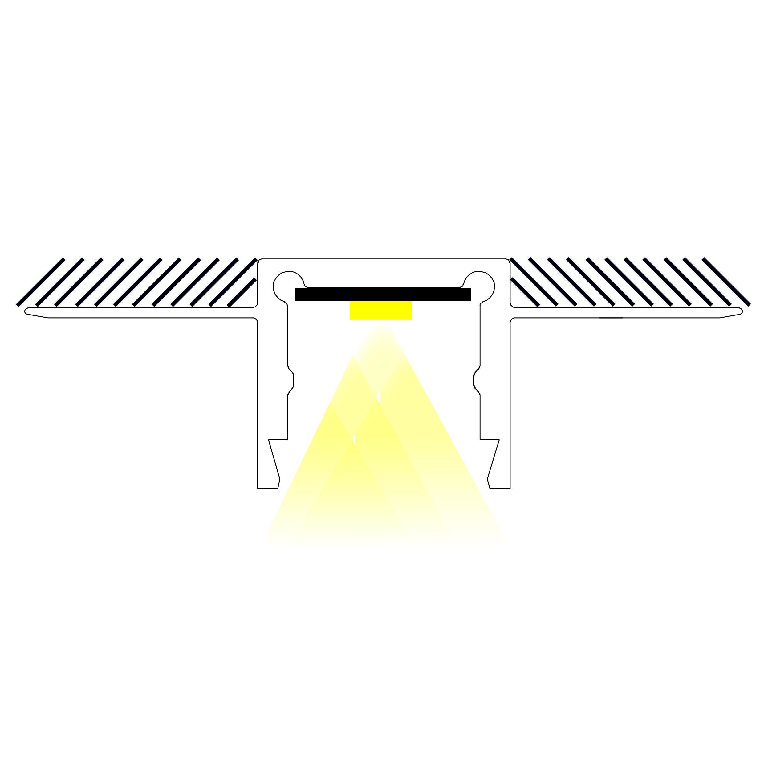 Profil EUROPOLE sur-mesure SKYLINE-T, couleur : aluminium mat, matériau : aluminium, traitement de la surface : anodisé. Longueur maximum : 3,02m. Walkover : non. Driveover : non. Mode de pose/installation : encastré. Type de fixation : se visse sur le support. Assemblage avec diffuseur et embouts de finition, installation avec vis dans doublage en plaque de plâtre. Fixation par silicone recommandée en cas de tolérance basse admise du profil SHARK. Pour installation des bandeaux LED IP20/IP67/IP68 et linéaires SHARK souples.