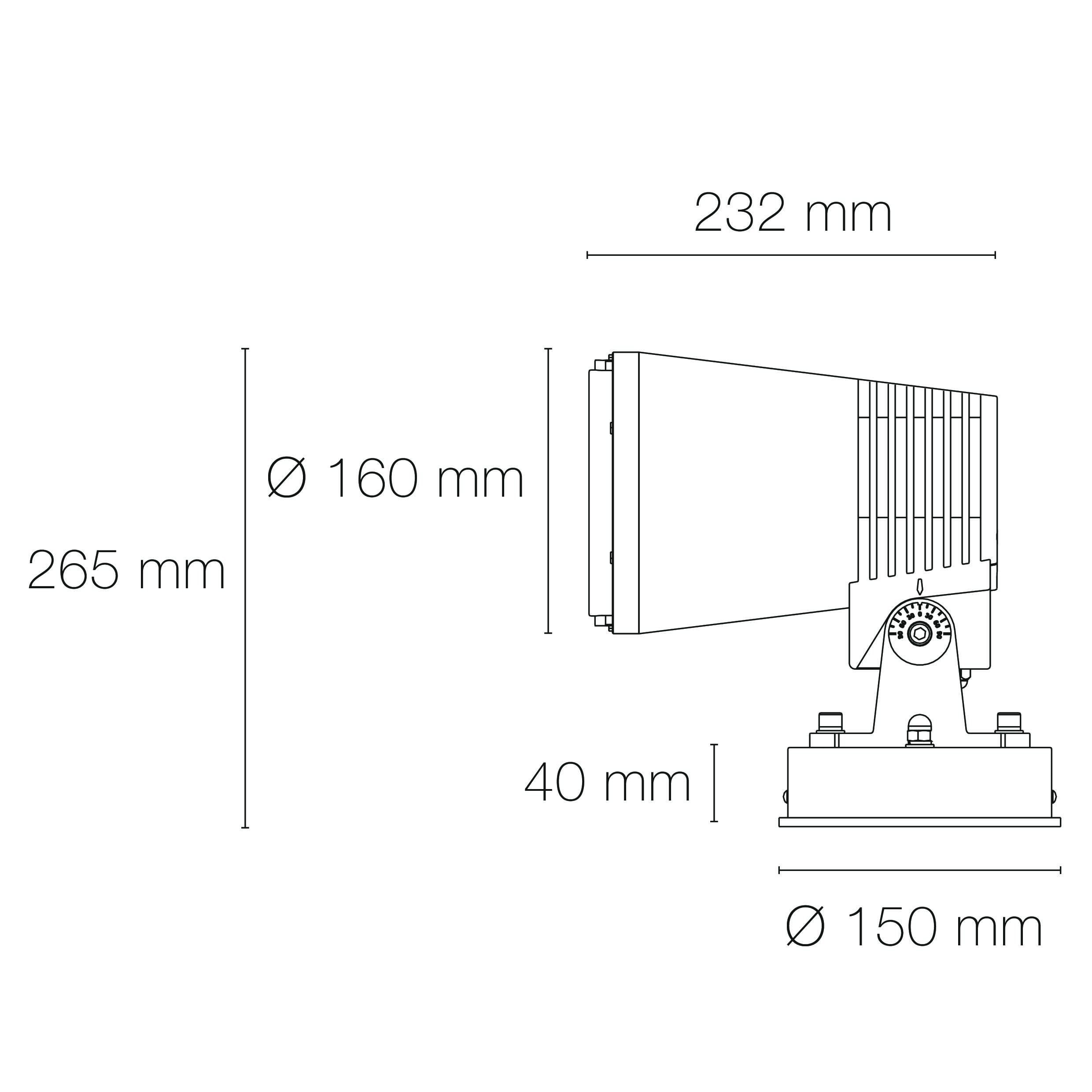 Projecteur EUROPOLE POWER 3 - 230 noir, orientable, blanc 4000K, IRC>70, 40W, 3895lm (97,38lm/W), optique faible éblouissement 25°, 230VAC. Classe de protection I, IP65, IK08, câblé de 0,5m avec connectiques rapides IP68 Plug & Play mâle et femelle, HO7RN-F 3x1mm². Durée de vie : 30000h. Dimmable : Non. Matériau : corps en aluminium de fonderie. Traitement de la surface : corps traité anticorrosion. Résistance environnement : garantie corrosion 15 ans. Températures de fonctionnement : -20°C/+40°C. Submersible : Non. Mode de pose/installation : sur patère.