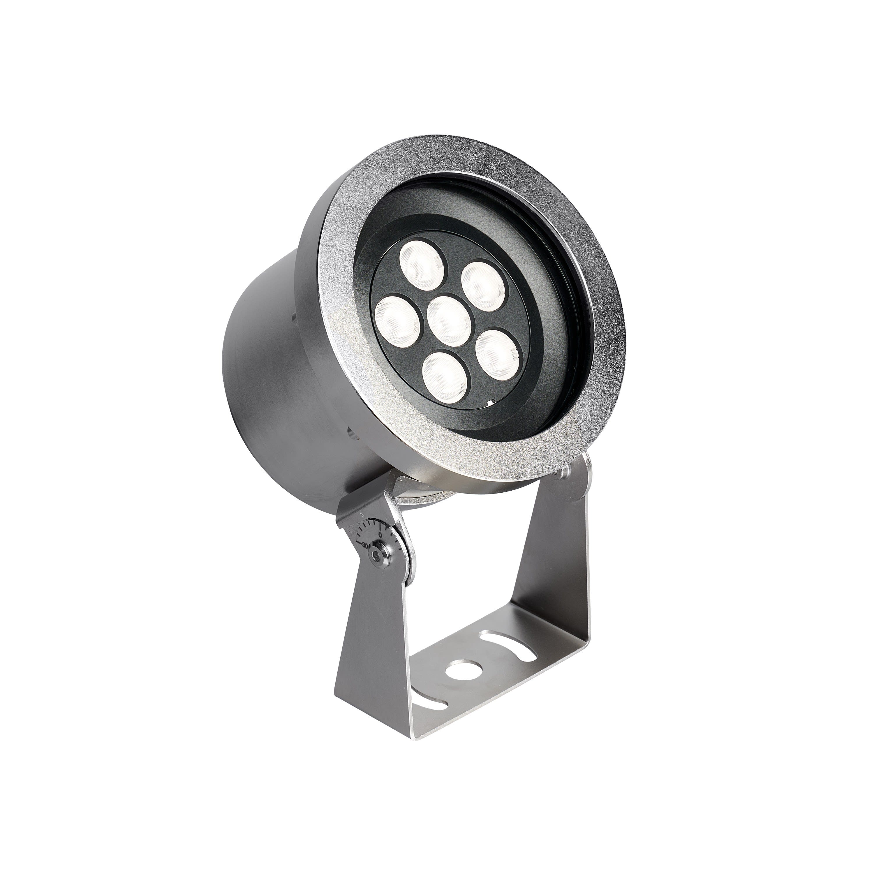 Projecteur NESSY 3 inox brillant sur patère, orientableRGB 35W, 1160lm (33 lm/W), verre transparent 30°. 24VDC. Classe III. IP68, IK08. Dimmable. Produit submersible, à installer impérativement dans l'eau.