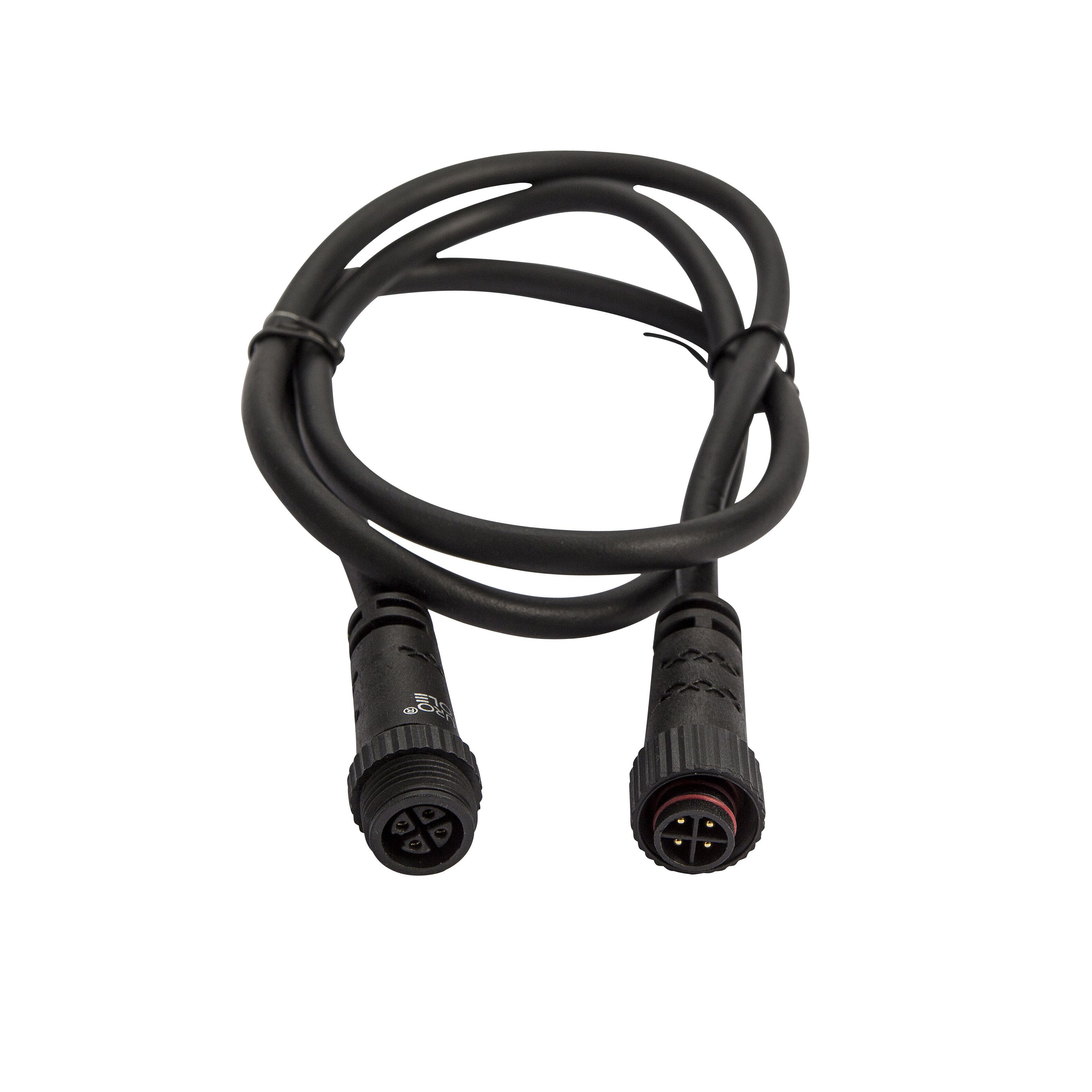 Solution PLUG & PLAY : Rallonge MINI mâle / femelle 4 pôles 1m IP68. Faible encombrement, Ø < 20mm. S'adapte avec réglettes IP67 montées avec connectiques étanches.