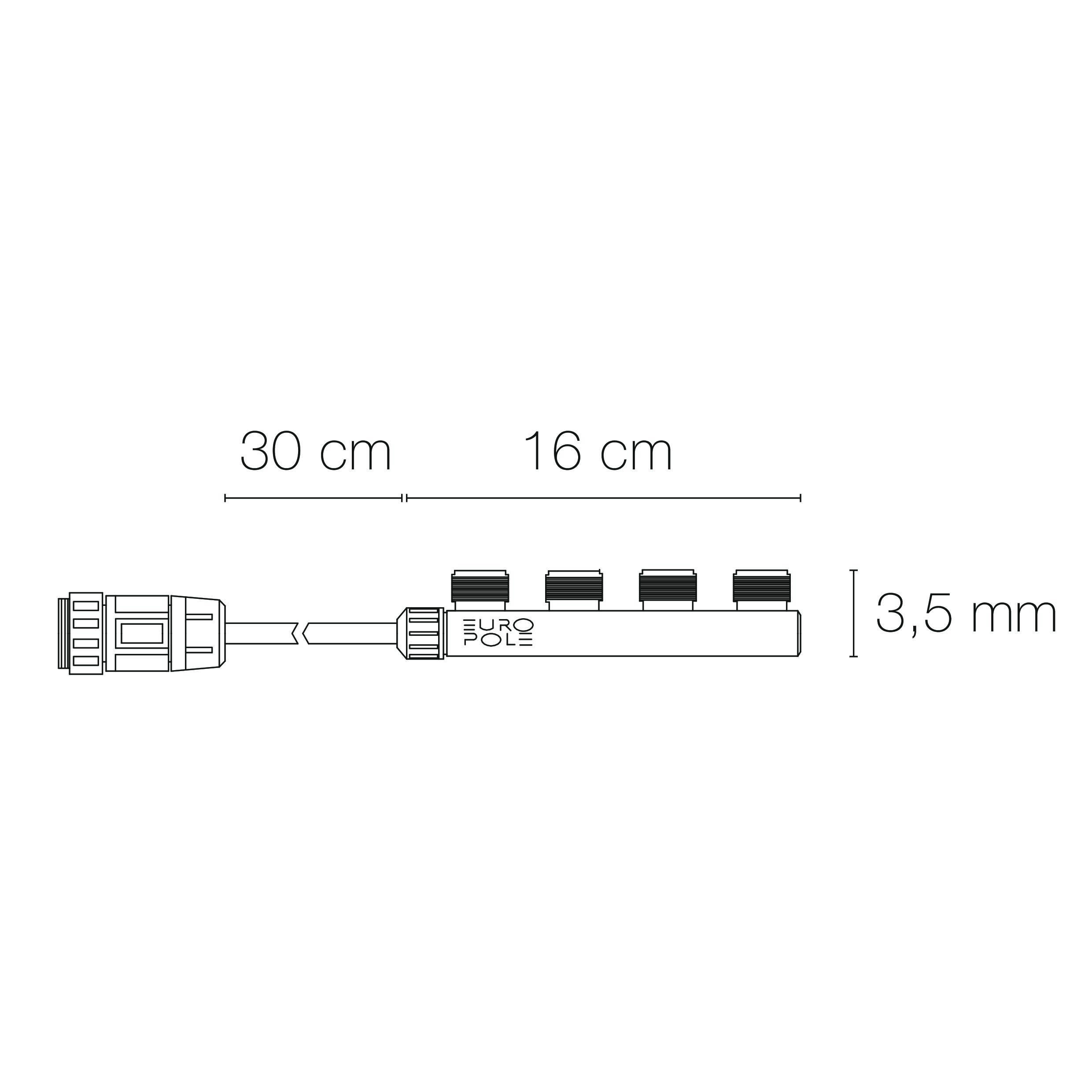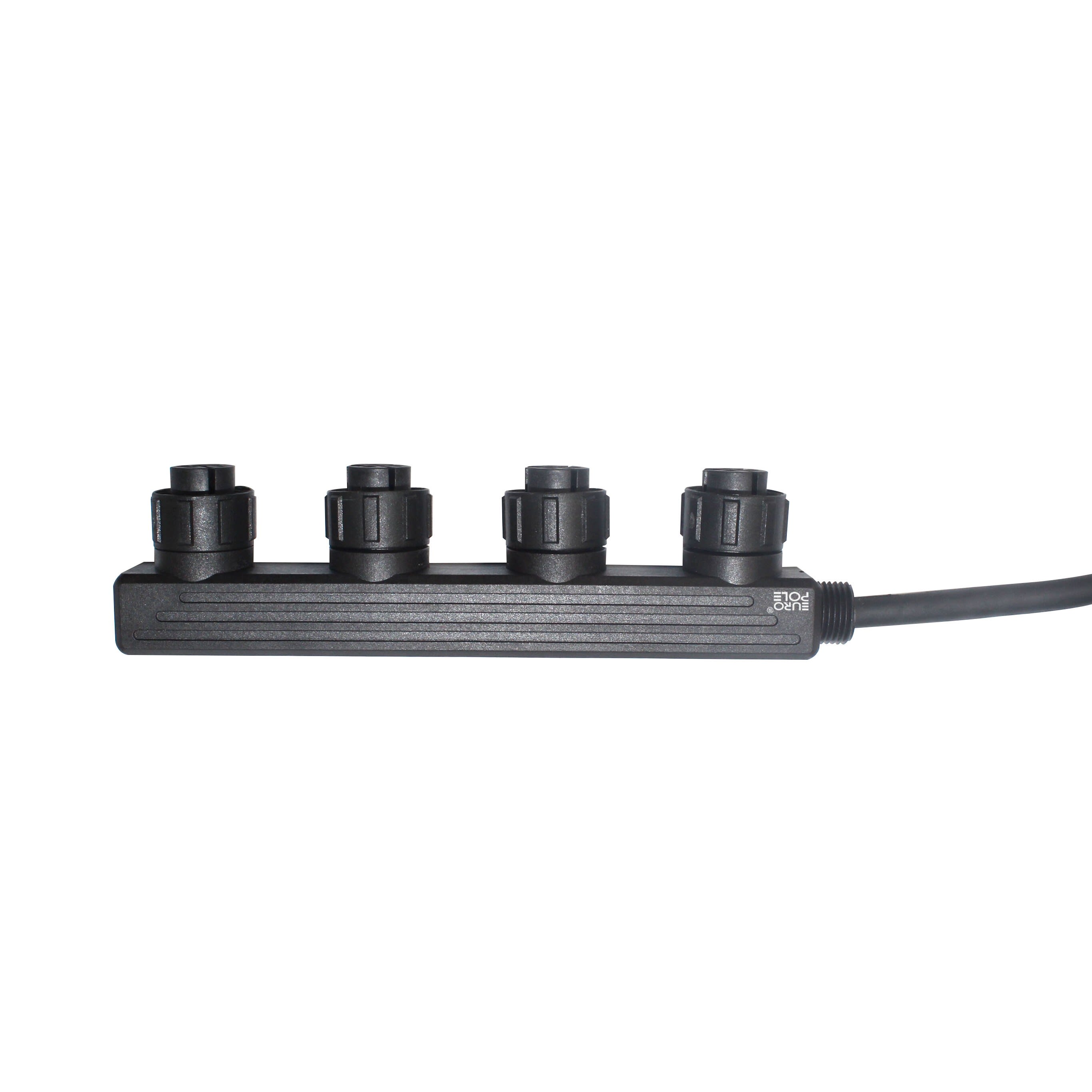 Solution PLUG & PLAY : Répartiteur 4 sorties 4 pôles IP67. S'adapte sur la totalité de notre gamme extérieure équipée avec la connectique IP68 M/F.