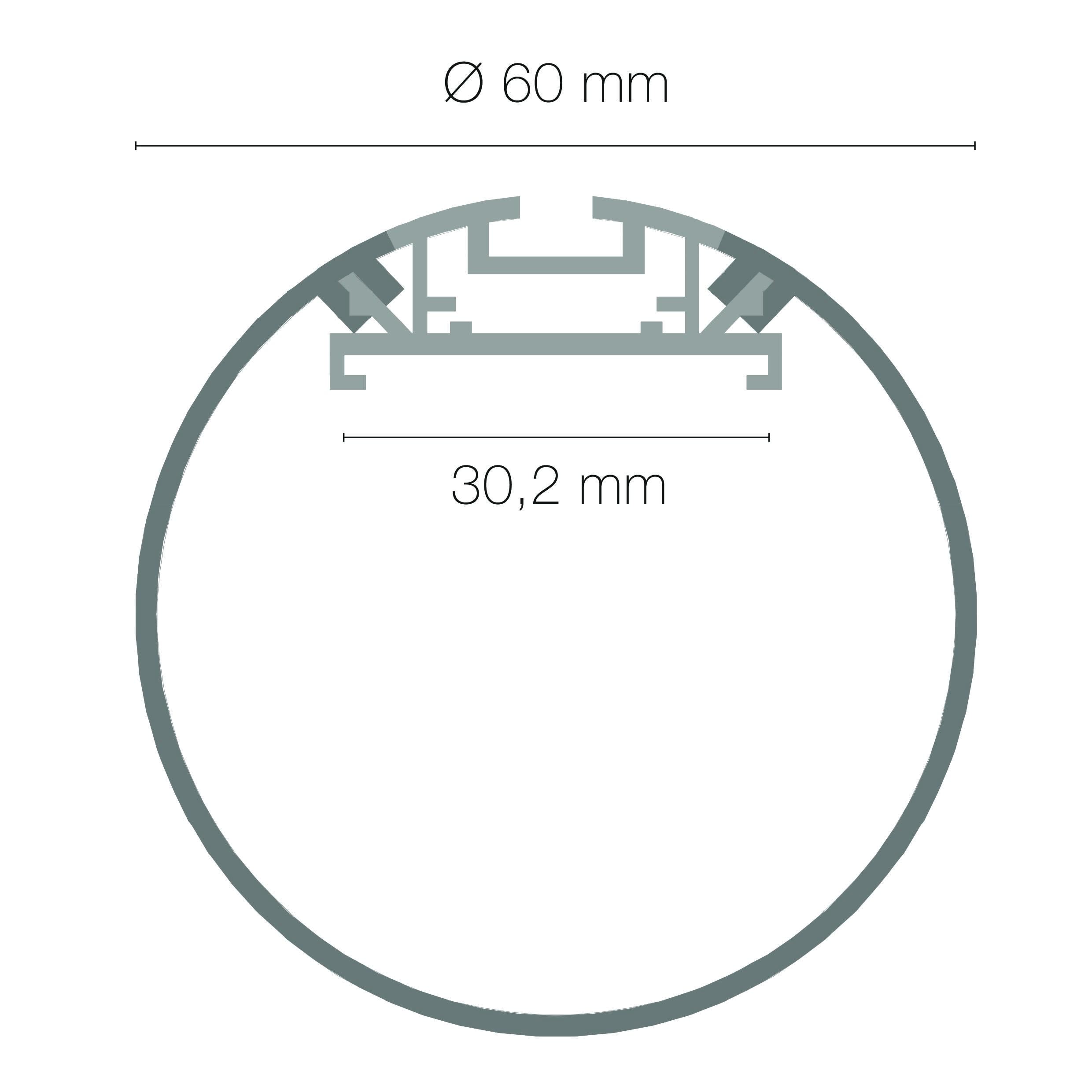 Réglette LED EUROPOLE sur-mesure au centimètre ROUND XL LED IP20 aluminium, diffuseur opale, RGB, 14,5W/m, 82/206/55lm/m (24lm/W), 60LED/m, optique 180°, 24VDC. Bandeau utilisé : VOLTA CHROMA RGB. Classe de protection III, IP20. Compatible volume salle de bain : non. Longueur maximum d'un seul tenant : 3m, câble non fourni : à compléter avec références de forfait de câblage et câble, contacter le service clients au 04 72 49 80 49. Dimmable : oui, variation avec alimentation/contrôleur compatible (non inclus). Matériau : aluminium anodisé. Durée de vie : 50000h. Températures de fonctionnement : -20°C/+40°C. Mode de pose/installation : suspension. Installation via kit de suspensions (inclus).