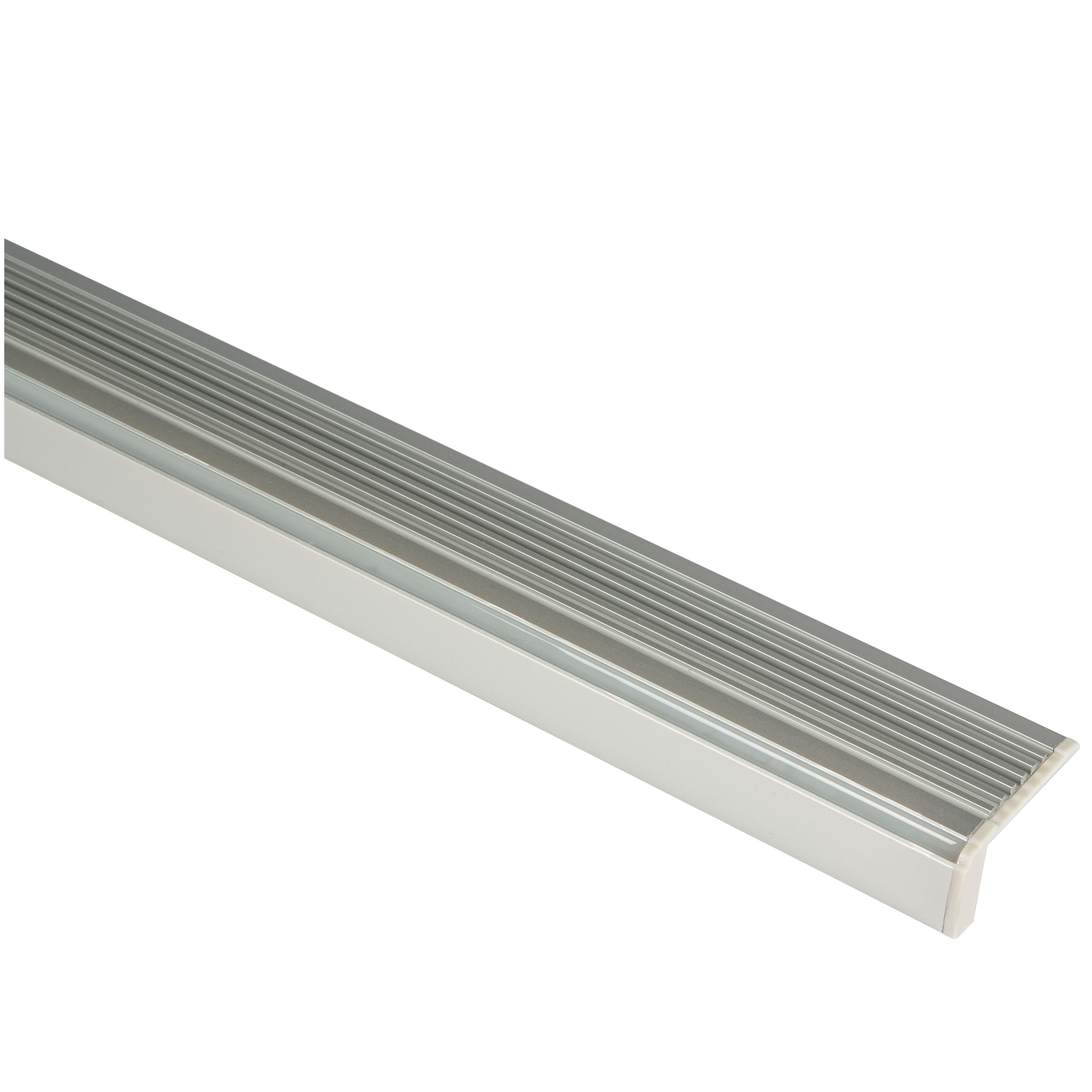 Nez de marche LED sur-mesure en cm SHARK STEKO (Maxi. 3,01m) aluminium, résine opale, blanc 3000K, IRC90, 7W/m 3000K 10lm/m (1lm/W), 24VDC. Classe III, IP67, IK10, câble non fourni : à compléter avec forfait et câble