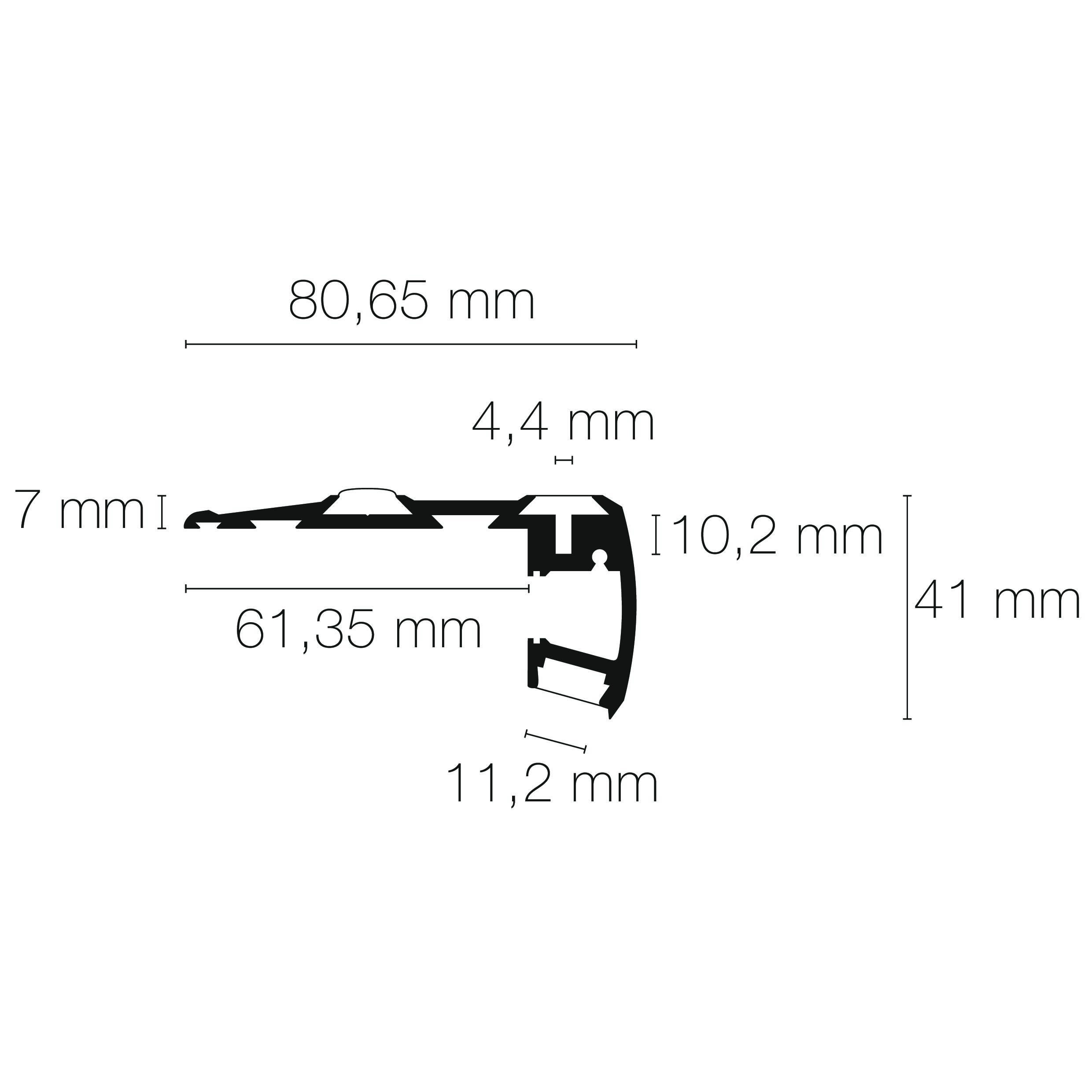 Nez de marche LED EUROPOLE sur-mesure au centimètre SHARK STEP noir, éclairage haut+bas : résine opale/résine transparente, rouge/ 3000K, IRC90, SDCM3, 4,8W/m, 369lm/m (77lm/W), 30+128LED/m, optique 120°/100°, 24VDC. Bandeau utilisé : SIDE FLEX+VOLTA PRO 4,8W/m. Classe de protection III, IP68, IK10. Compatible volume salle de bain : 1. Longueur maximum d'un seul tenant : 3,01m, câble non fourni : à compléter avec références de forfait de câblage et câble, contacter le service clients au 04 72 49 80 49. Dimmable : oui, variation avec alimentation/contrôleur compatible (non inclus). Matériau : aluminium/caoutchouc. Résistance environnement : UV/solvants/abrasion/garantie corrosion 15 ans. Durée de vie : 30000h. Températures de fonctionnement : -20°C/+60°C. Walkover : oui. Driveover : non. Mode de pose/installation : nez de marche. Installation avec bandes antidérapantes (incluses). La réglette se visse directement sur le support.