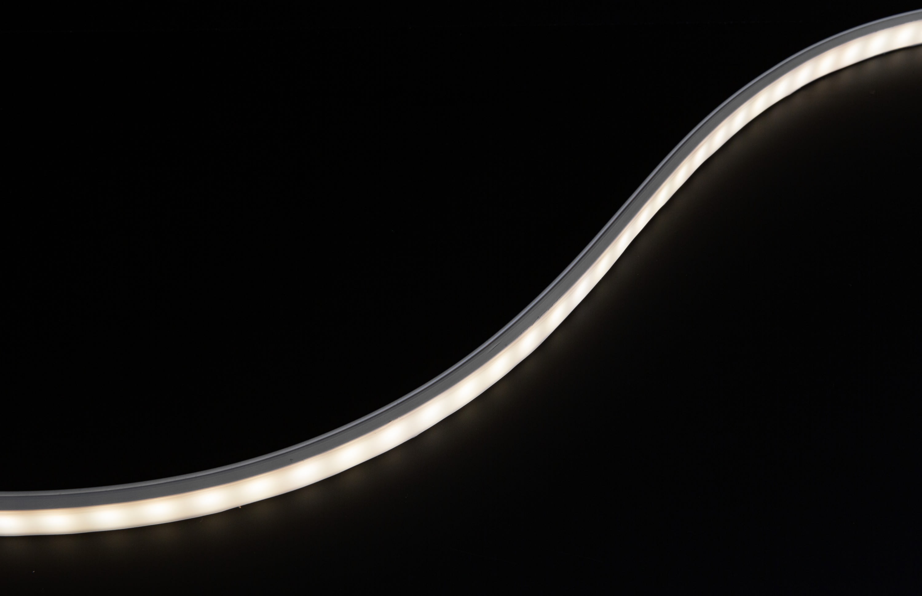 Linéaire LED étanche EUROPOLE sur-mesure au centimètre SHARK TOP VIEW MINI souple, résine opale, blanc 3000K, IRC90, SDCM3, 19,2W/m, 1999lm/m (104lm/W), 160LED/m, optique 120°, 24VDC. Bandeau utilisé : VOLTA PRO 19,2W/m. Classe de protection III, IP67. Compatible volume salle de bain : 1. Longueur maximum d'un seul tenant : 10m, câble non fourni : à compléter avec références de forfait de câblage et câble, contacter le service clients au 04 72 49 80 49. Dimmable : oui, variation avec alimentation/contrôleur compatible (non inclus). Matériau : polyuréthane. Résistance environnement : UV/solvants/garantie corrosion 15 ans. Durée de vie : 50000h. Températures de fonctionnement : -20°C/+60°C. Walkover : non. Driveover : non. Mode de pose/installation : saillie. Installation dans profil aluminium, via clips de fixation ou adhésif double face (non inclus).