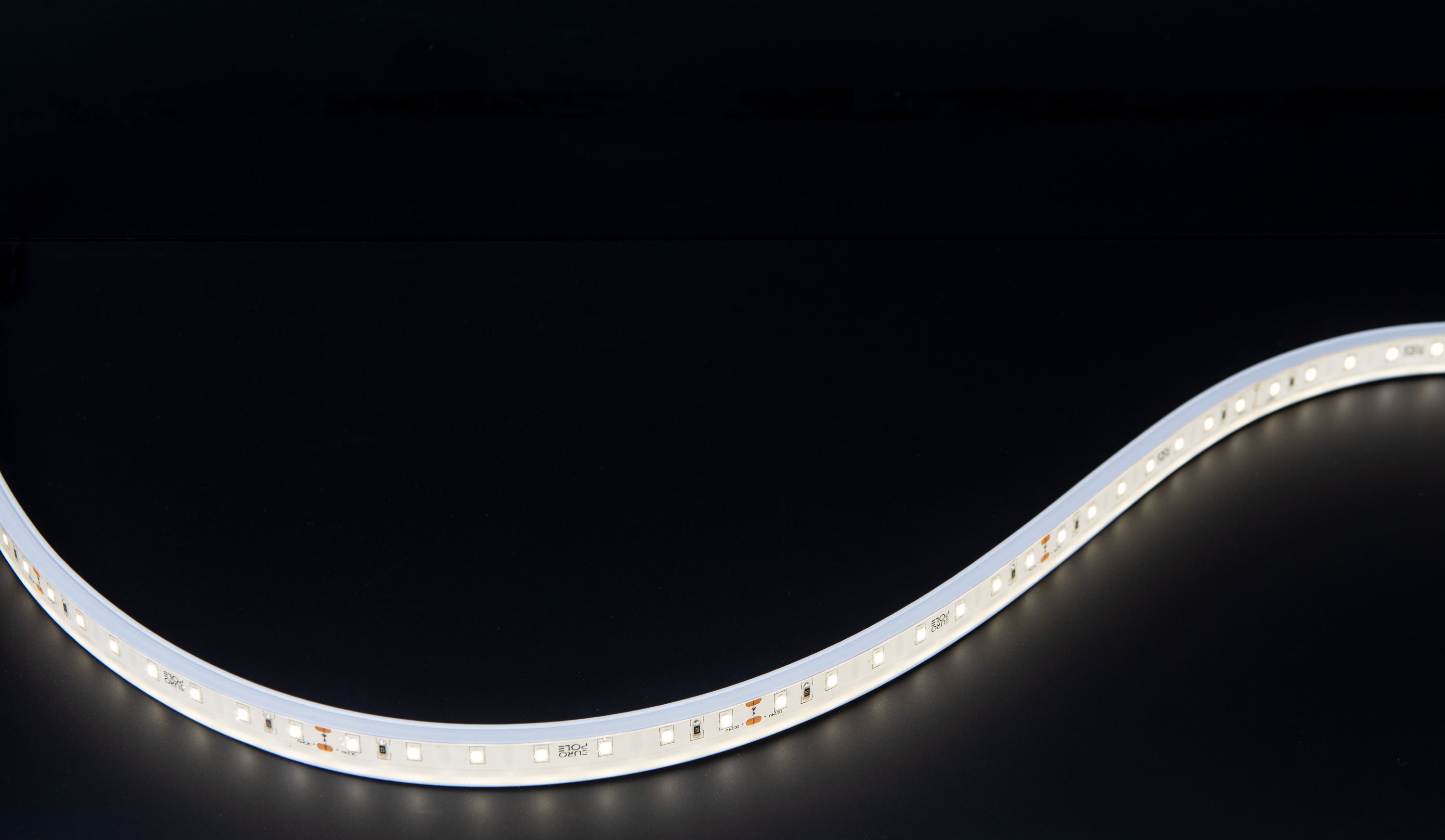 Linéaire LED étanche EUROPOLE sur-mesure au centimètre SHARK TOP VIEW MINI souple, résine transparente, blanc 3000K, IRC90, SDCM3, 9,6W/m, 1445lm/m (150lm/W), 128LED/m, optique , 24VDC. Bandeau utilisé : VOLTA PRO 9,6W/m. Classe de protection III, IP67. Compatible volume salle de bain : 1. Longueur maximum d'un seul tenant : 10m, câble non fourni : à compléter avec références de forfait de câblage et câble, contacter le service clients au 04 72 49 80 49. Dimmable : oui, variation avec alimentation/contrôleur compatible (non inclus). Matériau : polyuréthane. Résistance environnement : UV/solvants/garantie corrosion 15 ans. Durée de vie : 50000h. Températures de fonctionnement : -20°C/+60°C. Walkover : non. Driveover : non. Mode de pose/installation : saillie. Installation dans profil aluminium, via clips de fixation ou adhésif double face (non inclus).