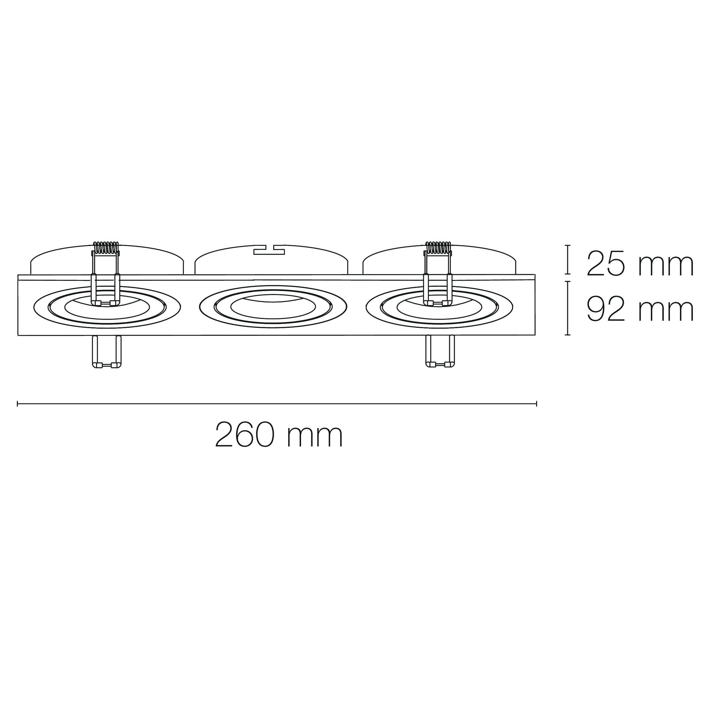 Spot EUROPOLE ALU 16 rectangle 3 têtes orientable, blanc mat (RAL9016), diffuseurs opale et transparent/nid d'abeille basse luminance, 230VAC, GU10, classe de protection II, IP20, compatible volume salle de bain : non, compatible isolants : non. Dimension collerette : 260x92mm. Patère rapide incluse : Oui, kit optiques spoterie inclus : non. Températures de fonctionnement : -20°C/+40°C. Fixation de la lampe par bague. Livré avec douille GU10 pré-connectée. Pour lampe LED 6W max. (non incluse).