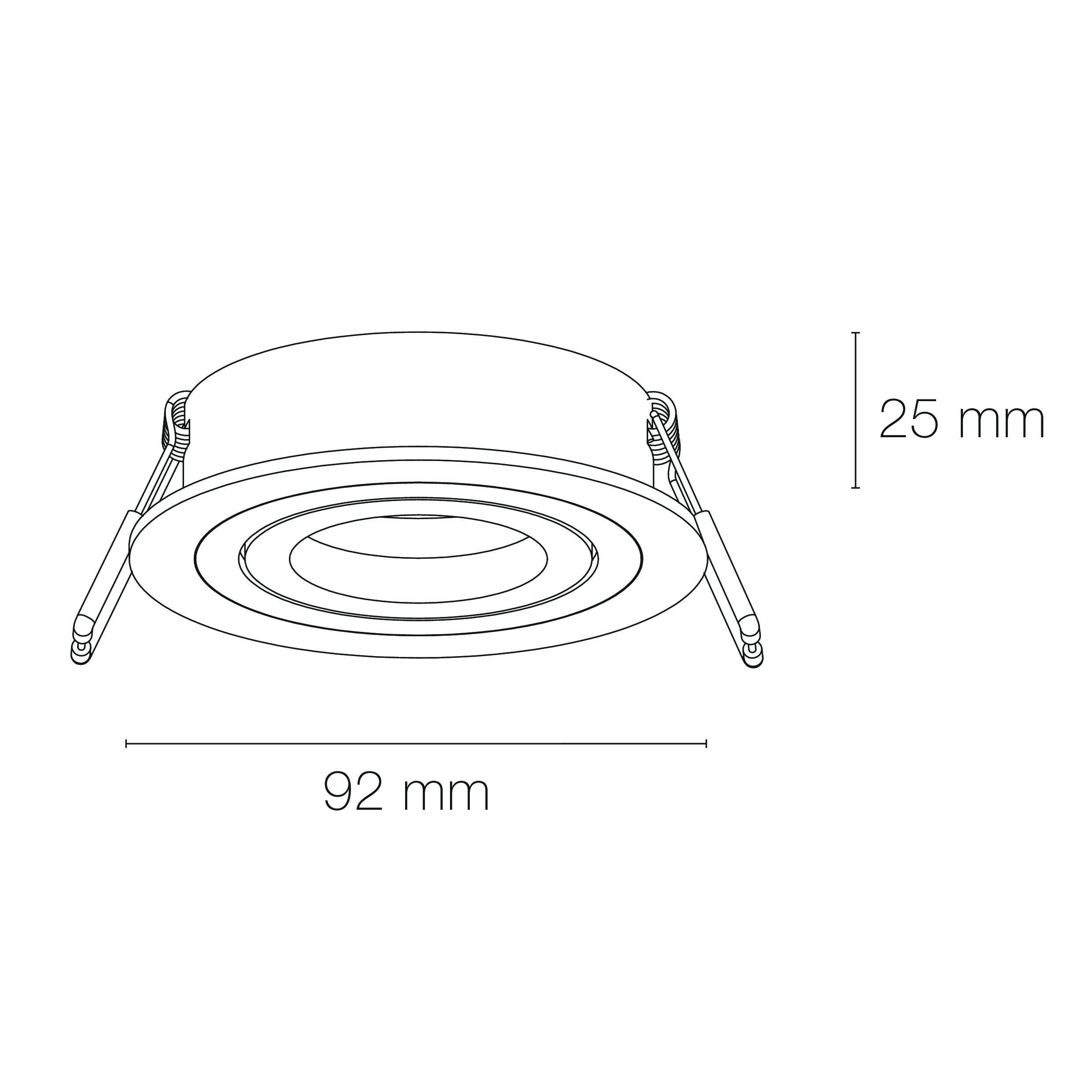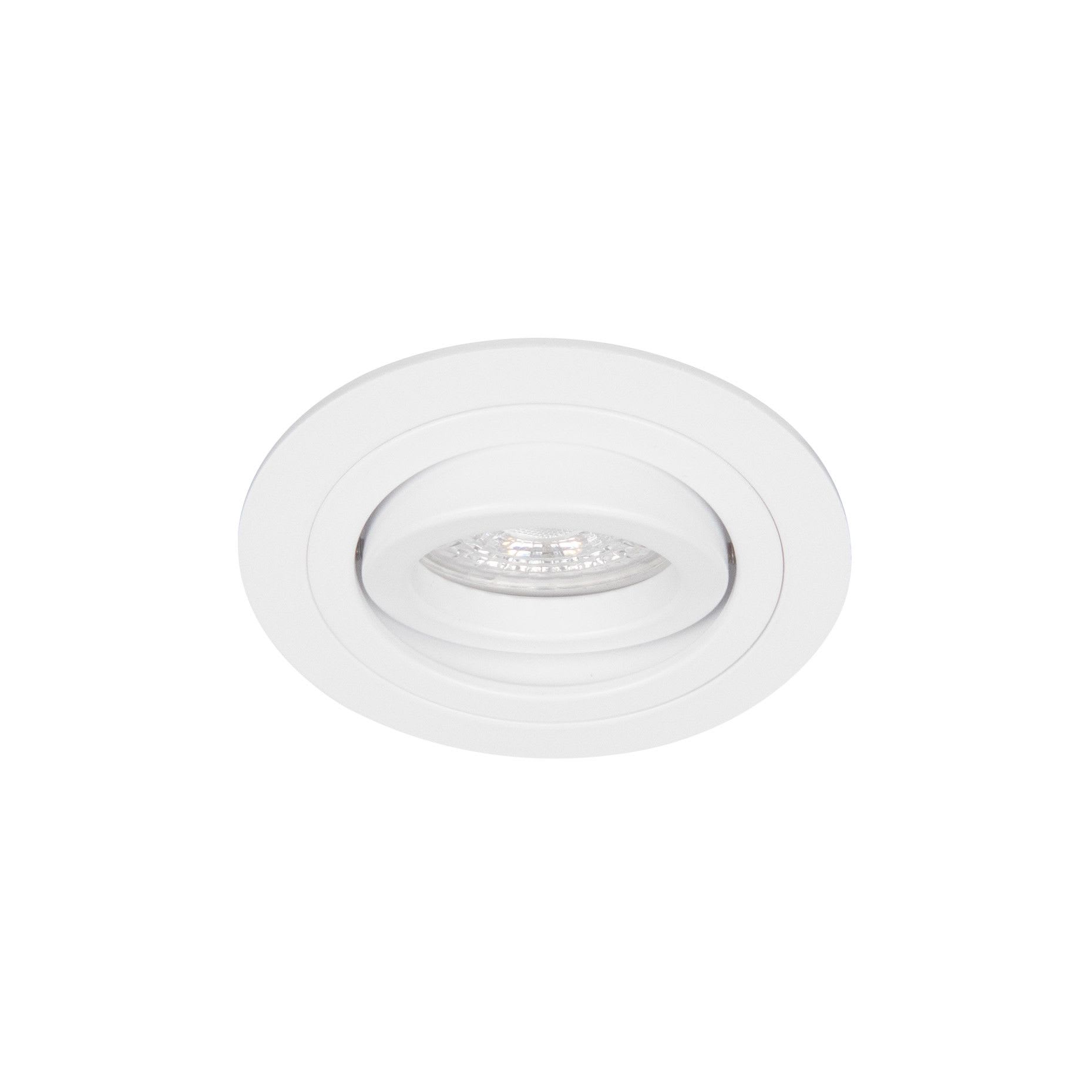 Spot EUROPOLE ALU 16 rond 1 tête orientable, blanc mat (RAL9016), diffuseurs opale et transparent/nid d'abeille basse luminance, 230VAC, GU10, classe de protection II, IP20, compatible volume salle de bain : non, compatible isolants : non. Dimension collerette : diamètre 92mm. Diamètre d'encastrement : 80mm. Patère rapide incluse : Oui, kit optiques spoterie inclus : non. Températures de fonctionnement : -20°C/+40°C. Fixation de la lampe par bague. Livré avec douille GU10 pré-connectée. Pour lampe LED 6W max. (non incluse).