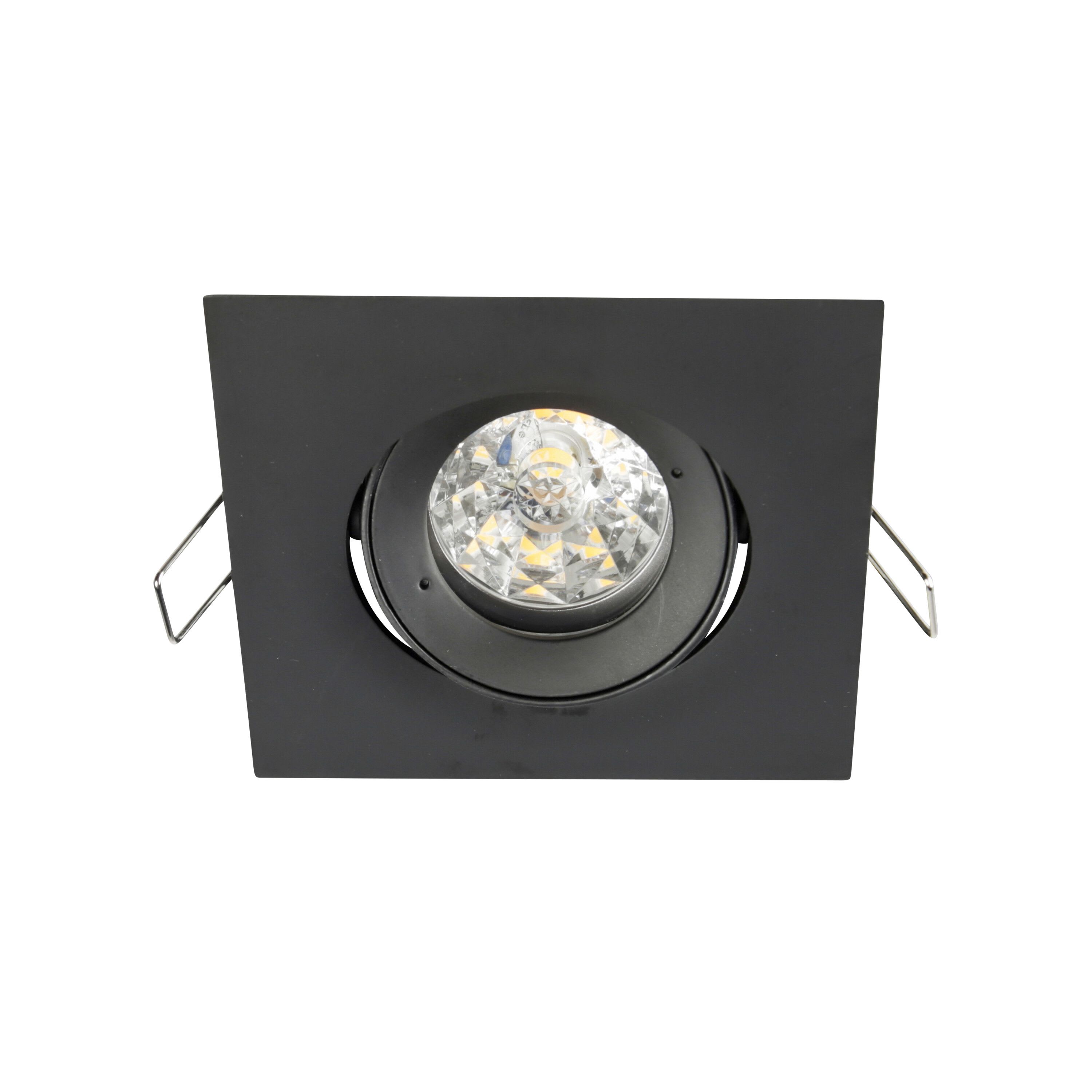 Spot EUROPOLE BE BEST DESIGN carré orientable, noir (RAL9005), adhésif opale/nid d'abeille basse luminance, 230VAC, GU10, classe de protection II, IP65, compatible volume salle de bain : non, RE2020, compatible isolants : non. Dimension collerette : 106x106mm. Diamètre d'encastrement : 88mm. Patère rapide incluse : Oui, kit optiques spoterie inclus : non. Températures de fonctionnement : -20°C/+40°C. Fixation de la lampe par 1/4 tour. Livré avec douille GU10 pré-connectée. Pour lampe LED 6W max. (non incluse).