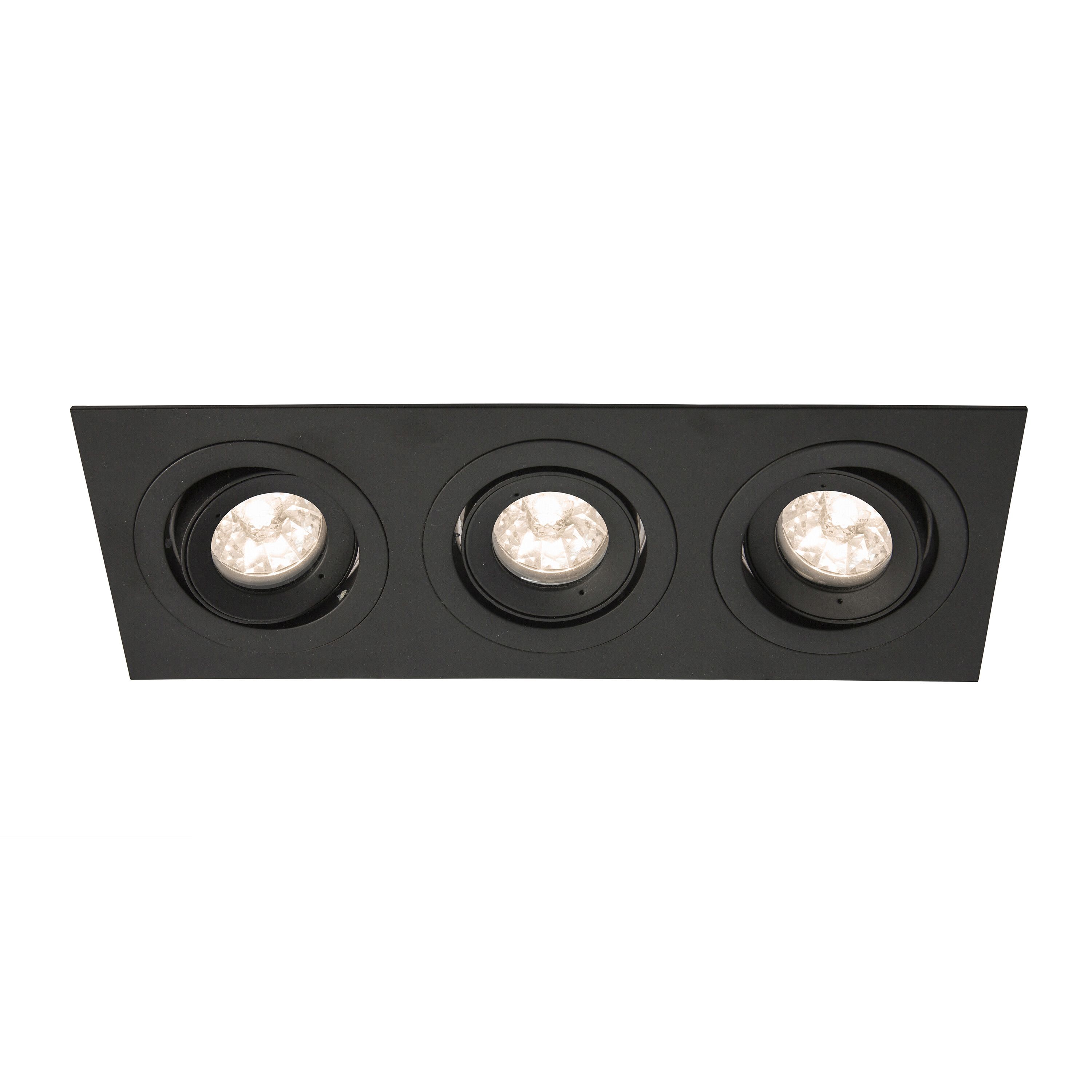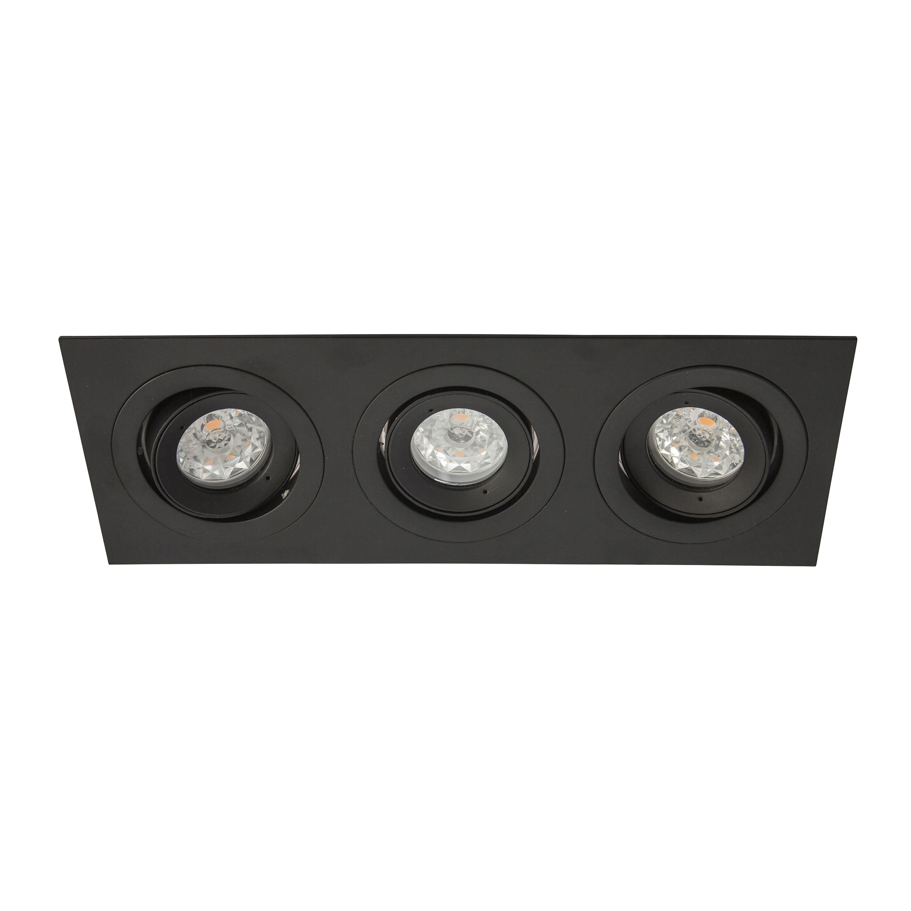 Spot EUROPOLE BE BEST DESIGN rectangle 3 têtes orientable, noir (RAL9005), adhésif opale/nid d'abeille basse luminance, 230VAC, GU10, classe de protection II, IP65, compatible volume salle de bain : non, RE2020, compatible isolants : non. Dimension collerette : 312x112mm. Patère rapide incluse : Oui, kit optiques spoterie inclus : non. Températures de fonctionnement : -20°C/+40°C. Fixation de la lampe par 1/4 tour. Livré avec douille GU10 pré-connectée. Pour lampe LED 6W max. (non incluse).