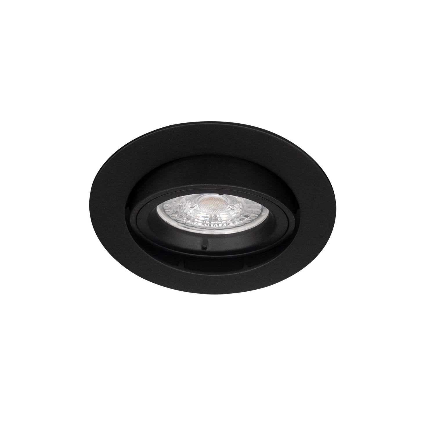 Spot EUROPOLE BE BETTER - 1/4 de tour rond orientable, noir (RAL9011), optique, 230VAC, GU10, classe de protection II, IP20, compatible volume salle de bain : non, compatible isolants : non. Dimension collerette : diamètre 96mm. Diamètre d'encastrement : 79mm. Patère rapide incluse : Oui, kit optiques spoterie inclus : non. Températures de fonctionnement : -20°C/+40°C. Fixation de la lampe par 1/4 tour. Livré avec douille GU10 pré-connectée. Pour lampe LED 6W max. (non incluse).