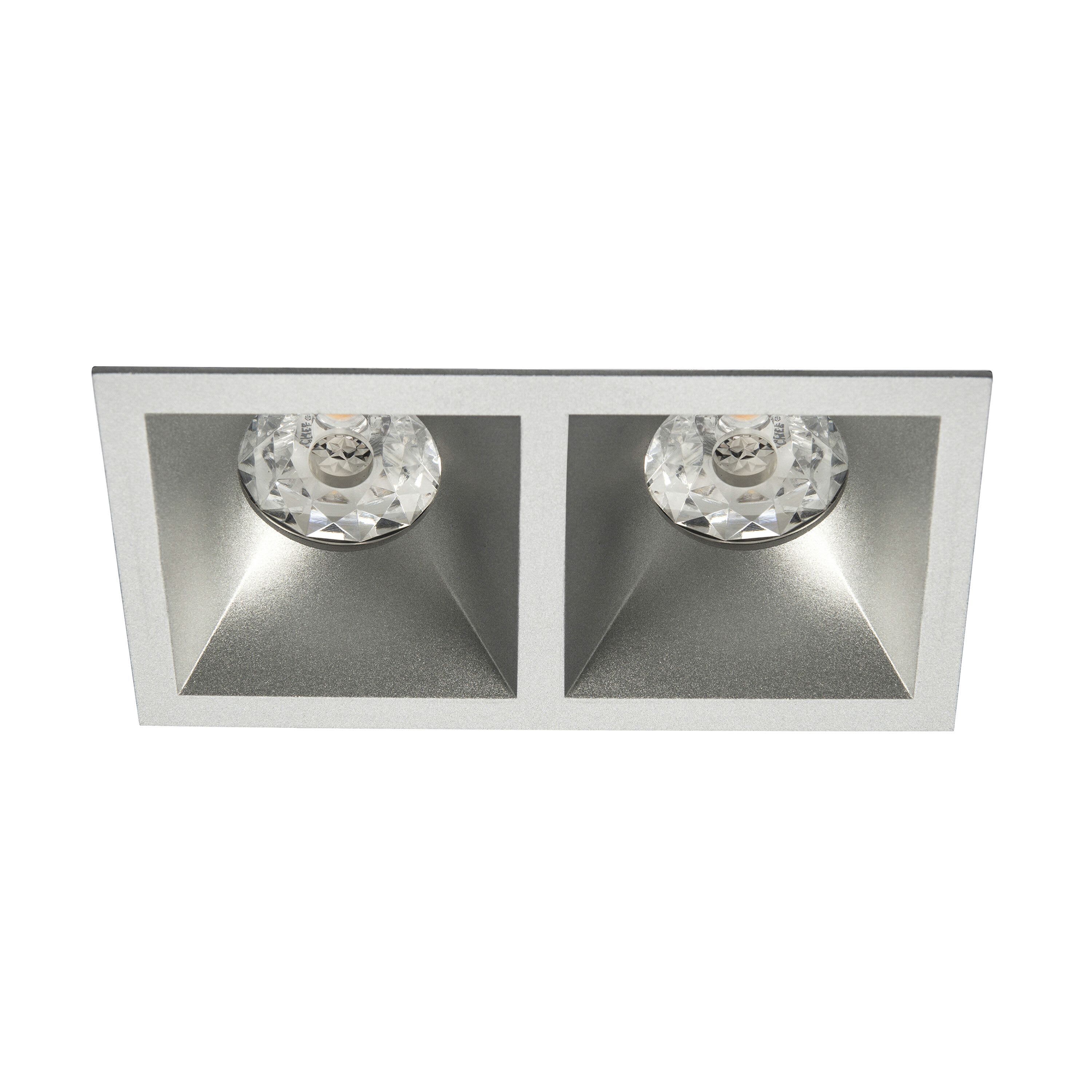 Spot DECO carré 2 têtes fixe, aluminium laqué, diffuseurs opale et transparent/nid d'abeille basse luminance, classe II, IP20, GU10, compatible volume salle de bain : non, RE2020, compatible isolants : non.