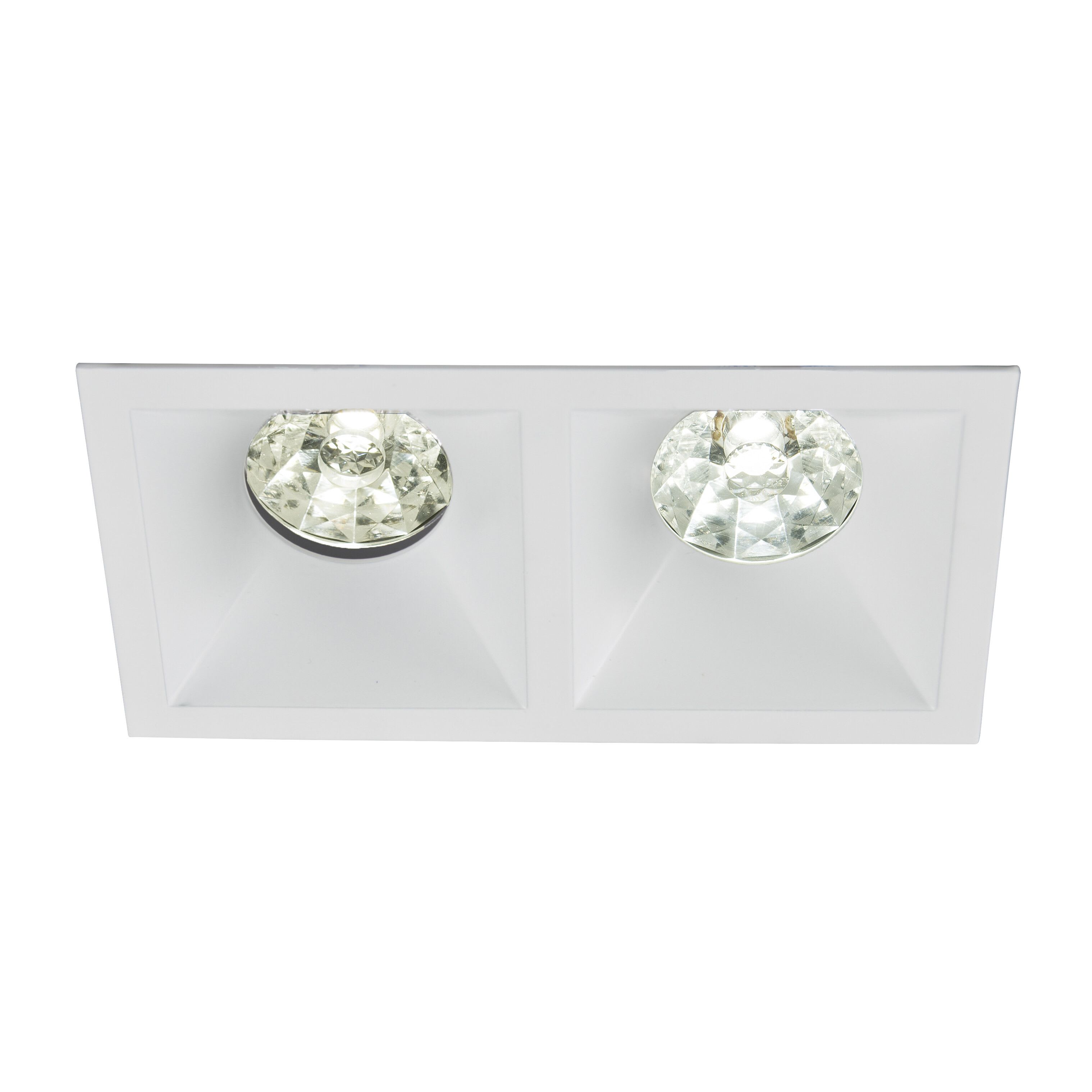 Spot EUROPOLE DECO carré 2 têtes fixe, blanc mat (RAL9016), diffuseurs opale et transparent/nid d'abeille basse luminance, 230VAC, GU10, classe de protection II, IP20, compatible volume salle de bain : non, RE2020, compatible isolants : non. Dimension collerette : 156x82mm. Patère rapide incluse : Oui, kit optiques spoterie inclus : kit 3 optiques. Températures de fonctionnement : -20°C/+40°C. Le montage des diffuseurs opale ou transparent rend le spot IP44. Livré avec douille GU10 pré-connectée. Pour lampe LED 6W max. (non incluse).