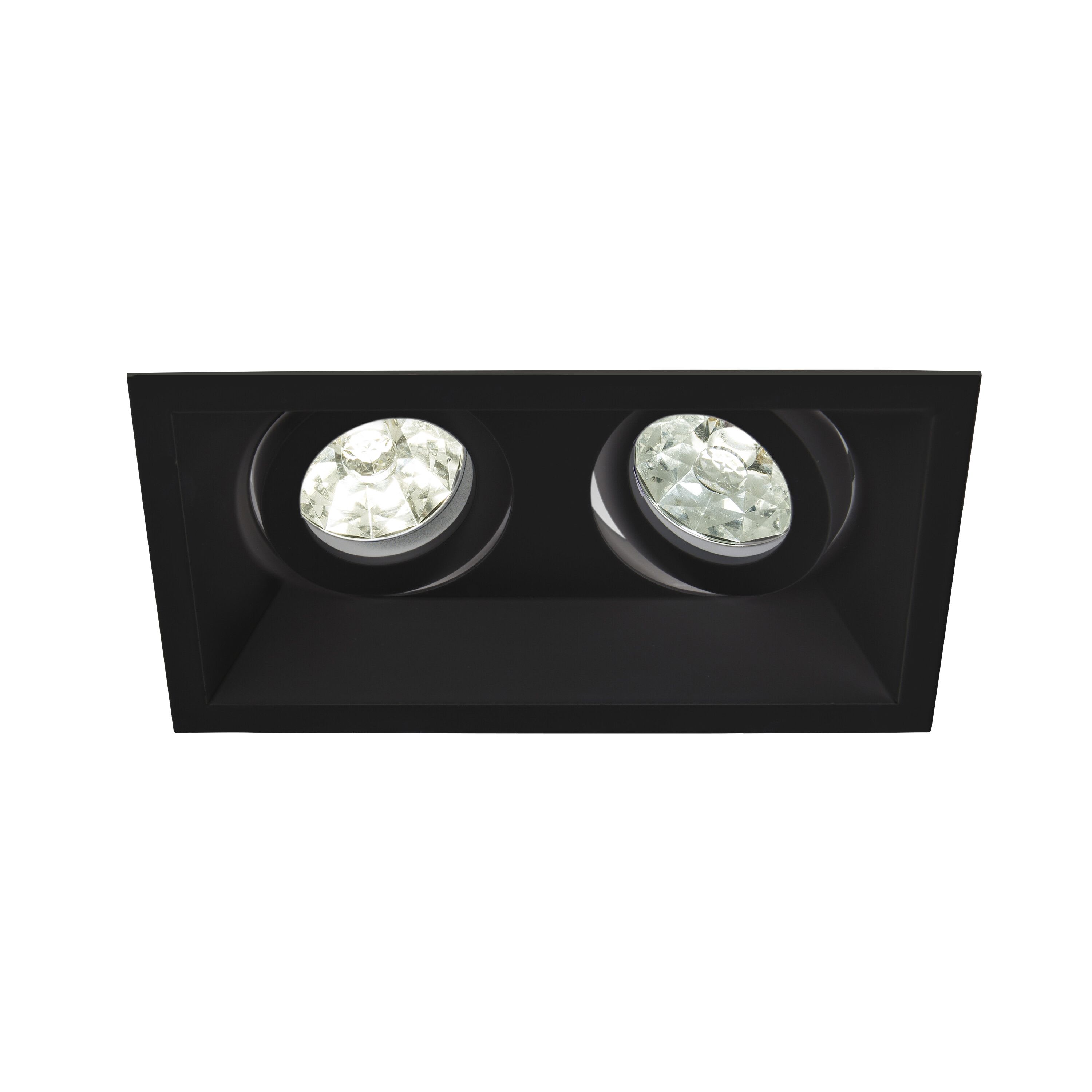 Spot DECO carré 2 têtes orientable, noir mat, diffuseurs opale et transparent/nid d'abeille basse luminance, classe II, IP20, GU10, compatible volume salle de bain : non, RE2020, compatible isolants : non.