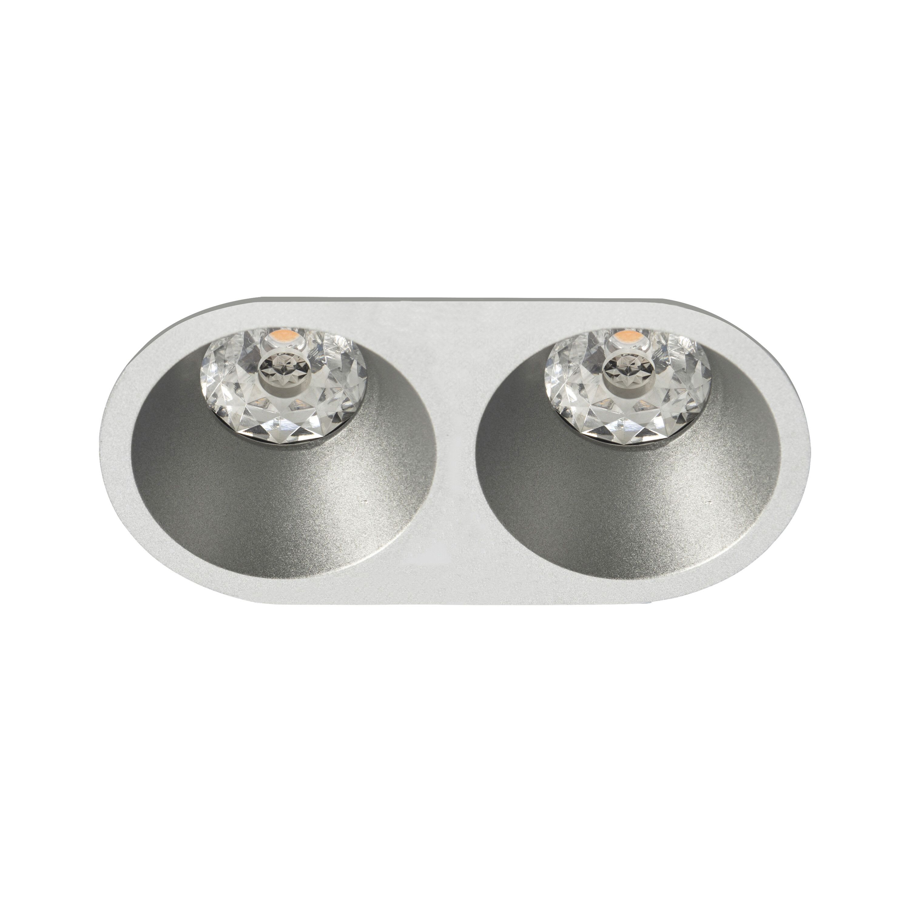 Spot EUROPOLE DECO rond 2 têtes fixe, aluminium laqué, diffuseurs opale et transparent/nid d'abeille basse luminance, 230VAC, GU10, classe de protection II, IP20, compatible volume salle de bain : non, RE2020, compatible isolants : non. Dimension collerette : diamètre mm. Patère rapide incluse : Oui, kit optiques spoterie inclus : kit 3 optiques. Températures de fonctionnement : -20°C/+40°C. Le montage des diffuseurs opale ou transparent rend le spot IP44. Livré avec douille GU10 pré-connectée. Pour lampe LED 6W max. (non incluse).
