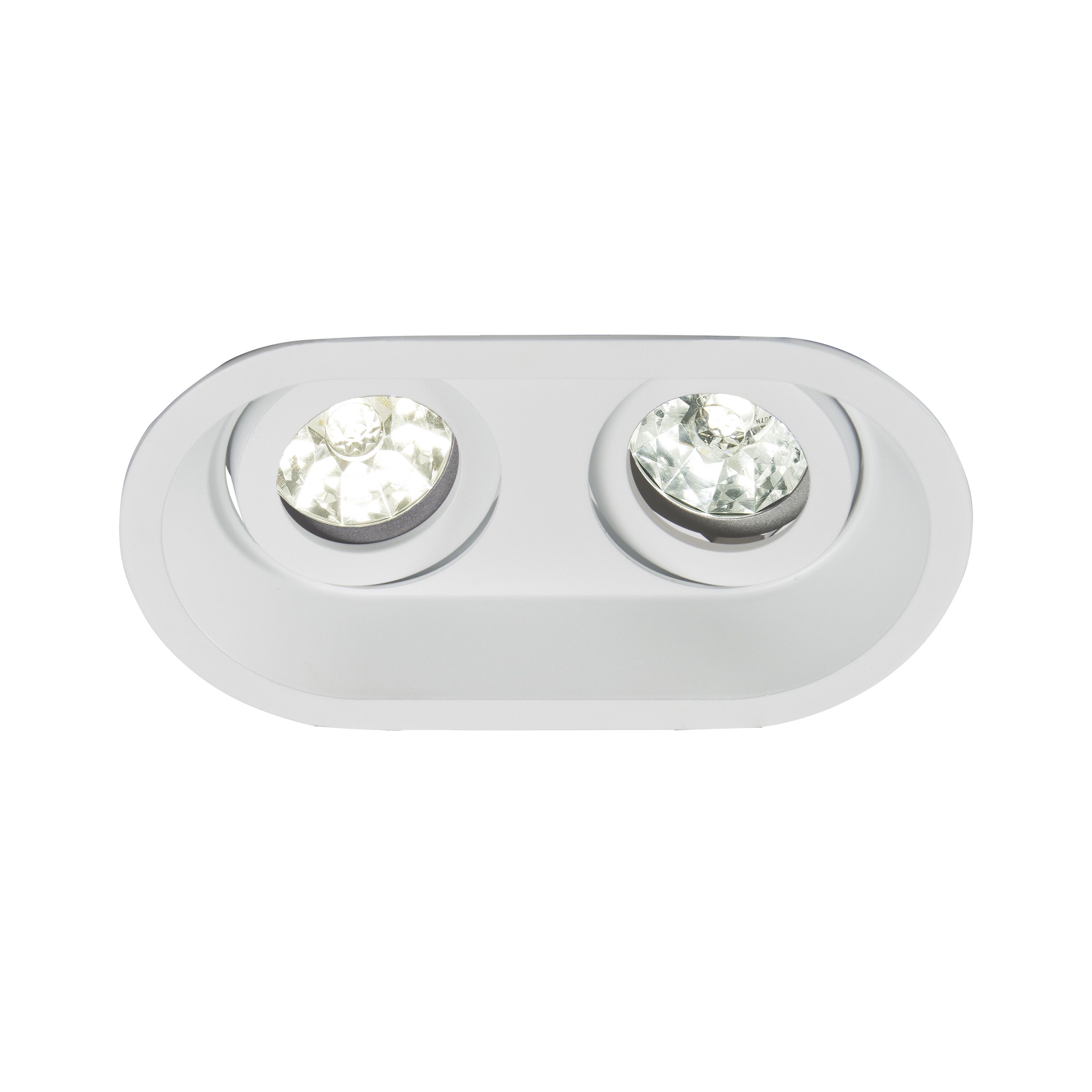 Spot EUROPOLE DECO rond 2 têtes orientable, blanc mat (RAL9016), diffuseurs opale et transparent/nid d'abeille basse luminance, 230VAC, GU10, classe de protection II, IP20, compatible volume salle de bain : non, RE2020, compatible isolants : non. Dimension collerette : diamètre mm. Patère rapide incluse : Oui, kit optiques spoterie inclus : kit 3 optiques. Températures de fonctionnement : -20°C/+40°C. Livré avec douille GU10 pré-connectée. Pour lampe LED 6W max. (non incluse).