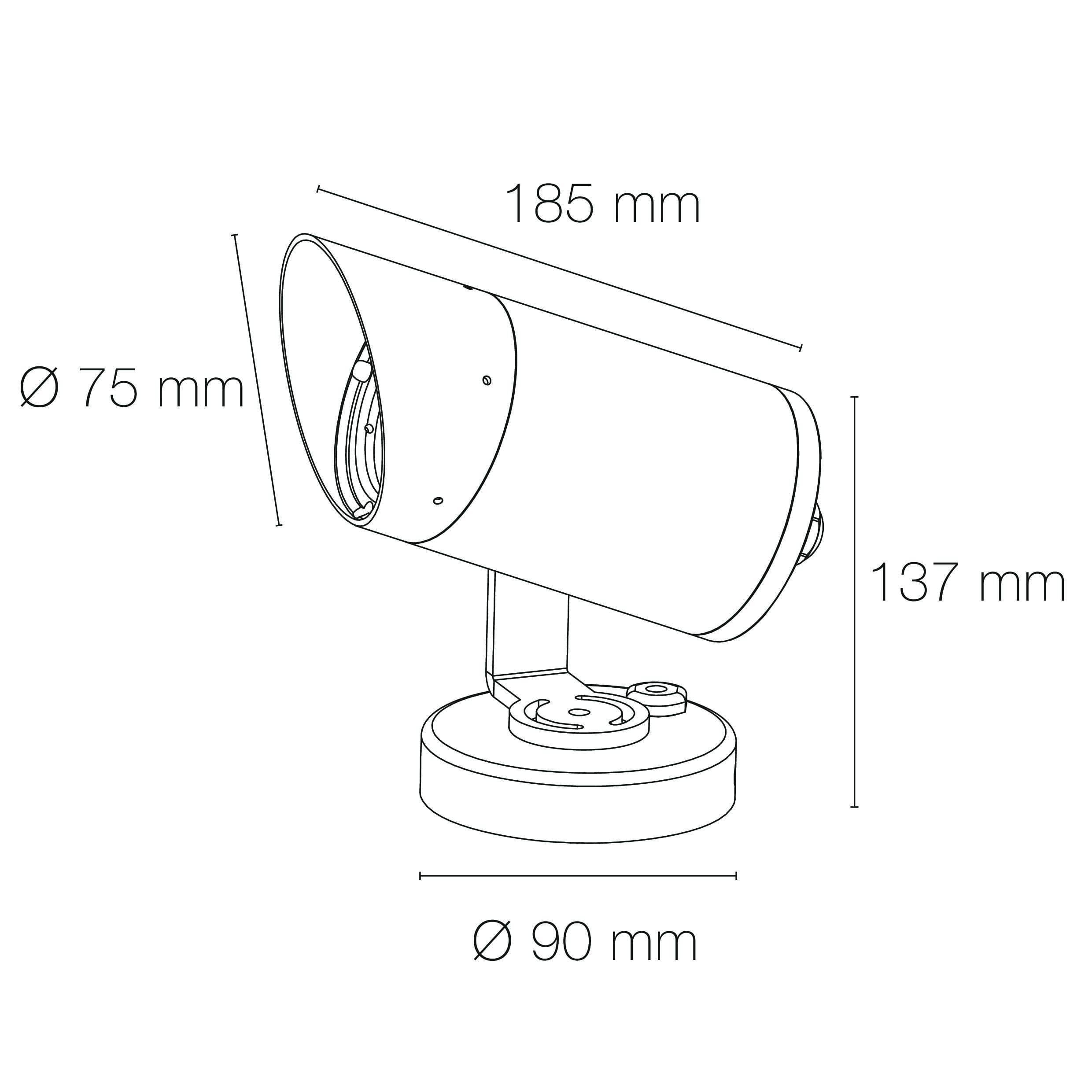 Projecteur TUBE 2 - patère noir, rotatif et orientable, blanc 4000K, IRC>70, 10W, 846lm (84,6lm/W), optique faible éblouissement 60°, 230VAC. Classe I, IP65, IK05. Non dimmable. Submersible : Non.