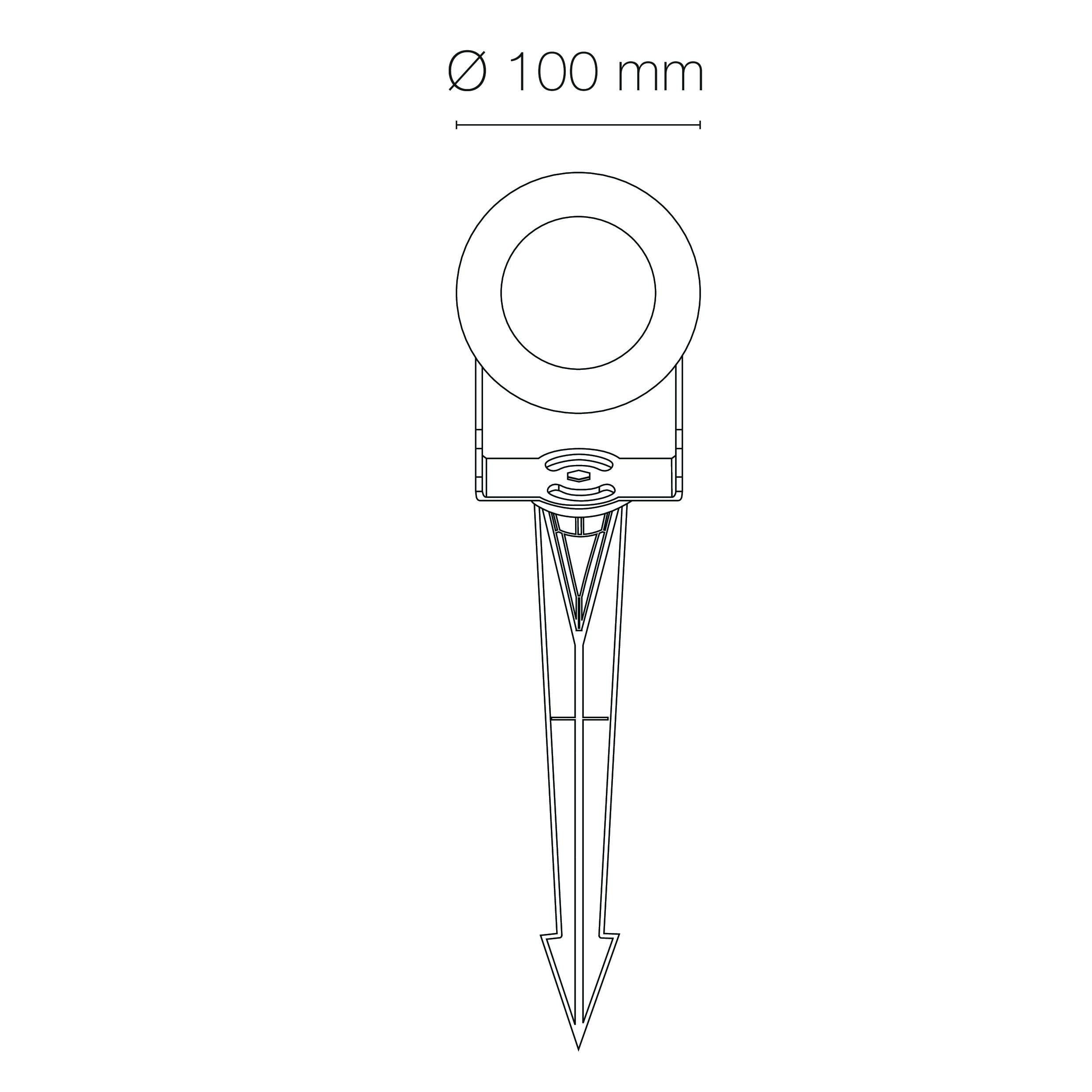 Projecteur YAH LED EVO - piquet noir, rotatif et orientable, blanc 4000K, IRC90, 6W, 550lm (91,67lm/W), verre transparent 38°, 230VAC. Classe I, IP65, IK04. Dimmable. Submersible : Non.