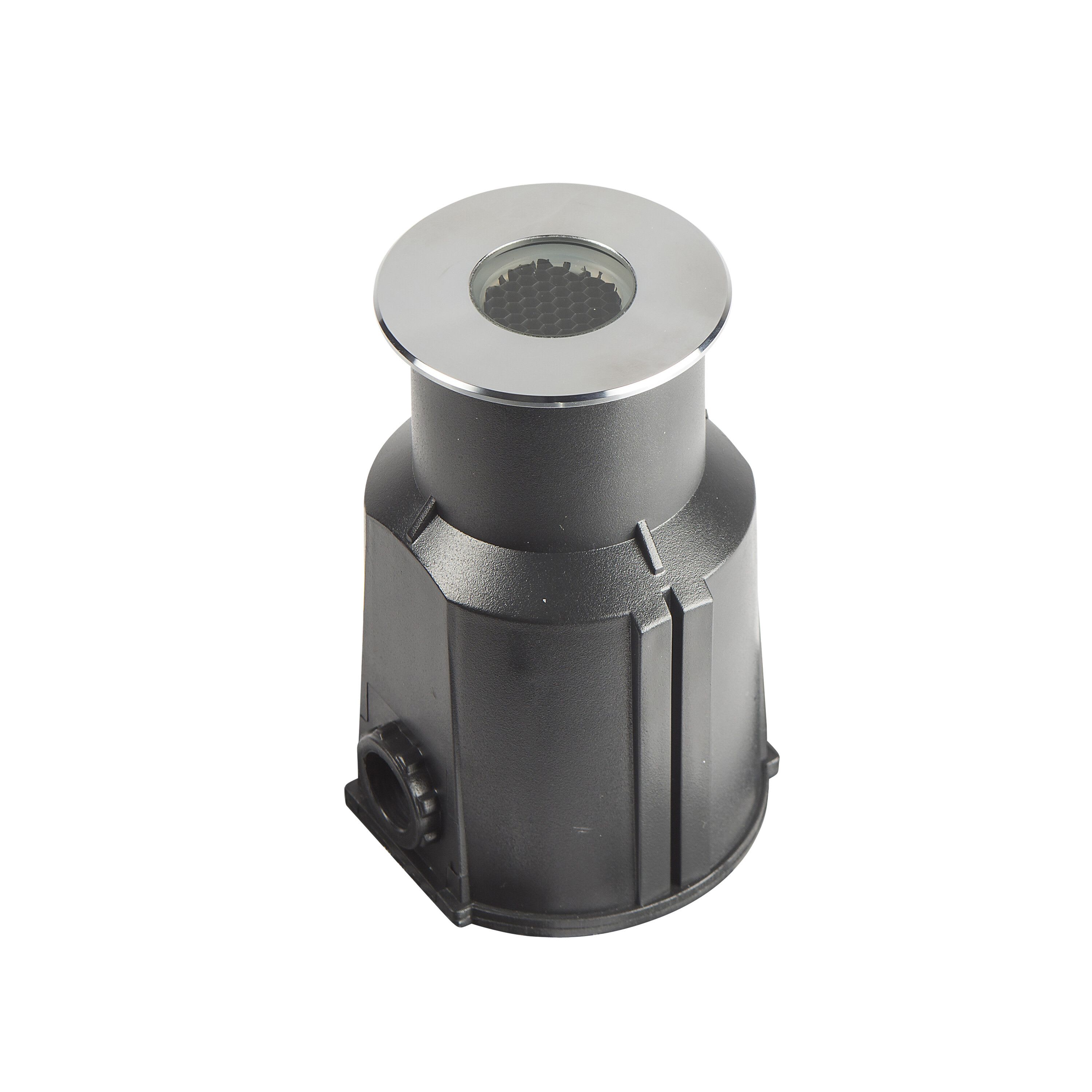 Encastré de sol EUROPOLE ZEPH 1 - 24 rond inox, blanc 4000K, IRC>80, 2W, 144lm (72lm/W), verre transparent/nid d'abeille basse luminance, angle 30° (éclairage), 24VDC. Classe de protection III, IP67, IK08, câblé de 0,5m avec connectiques rapides IP68 Plug & Play mâle et femelle, HO5RN-F 2x1mm². Durée de vie : 30000h. Dimmable : Non. Dimension collerette : diamètre 70mm. Diamètre d'encastrement : 55mm. Matériau : corps en aluminium/collerette et visserie inox 316L. Traitement de la surface : traitement de la collerette par passivation, corps traité anticorrosion. Résistance environnement : garantie corrosion 15 ans. Températures de fonctionnement : -20°C/+40°C. Walkover : Oui. Driveover : 1500Kg avec pot d'encastrement. Submersible : Non. Diamètre d'encastrement indiqué pour installation sans pot d'encastrement.