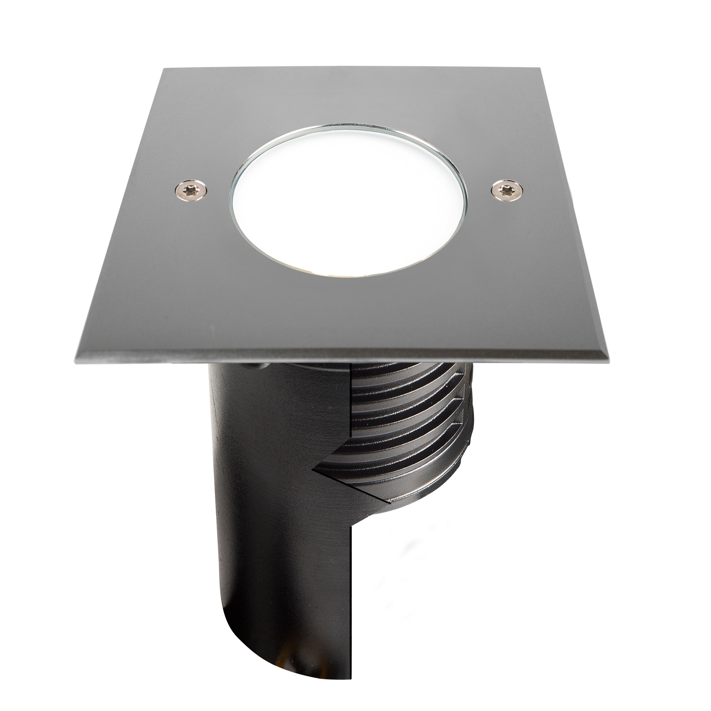 Encastré de sol EUROPOLE ZEPH 2 - 230 carré inox, blanc 4000K, IRC>80, 3x2W, 322lm (54lm/W), verre opale, angle 120° (balisage), 230VAC. Classe de protection I, IP67, IK08, câblé de 0,5m avec connectiques rapides IP68 Plug & Play mâle et femelle, HO5RN-F 3x1mm². Durée de vie : 30000h. Dimmable : Non. Dimension collerette : 116x116mm. Diamètre d'encastrement : 96mm. Matériau : corps en aluminium/collerette et visserie inox 316L. Traitement de la surface : traitement de la collerette par passivation, corps traité anticorrosion. Résistance environnement : garantie corrosion 15 ans. Températures de fonctionnement : -20°C/+40°C. Walkover : Oui. Driveover : 1500Kg avec pot d'encastrement. Submersible : Non. Diamètre d'encastrement indiqué pour installation sans pot d'encastrement.