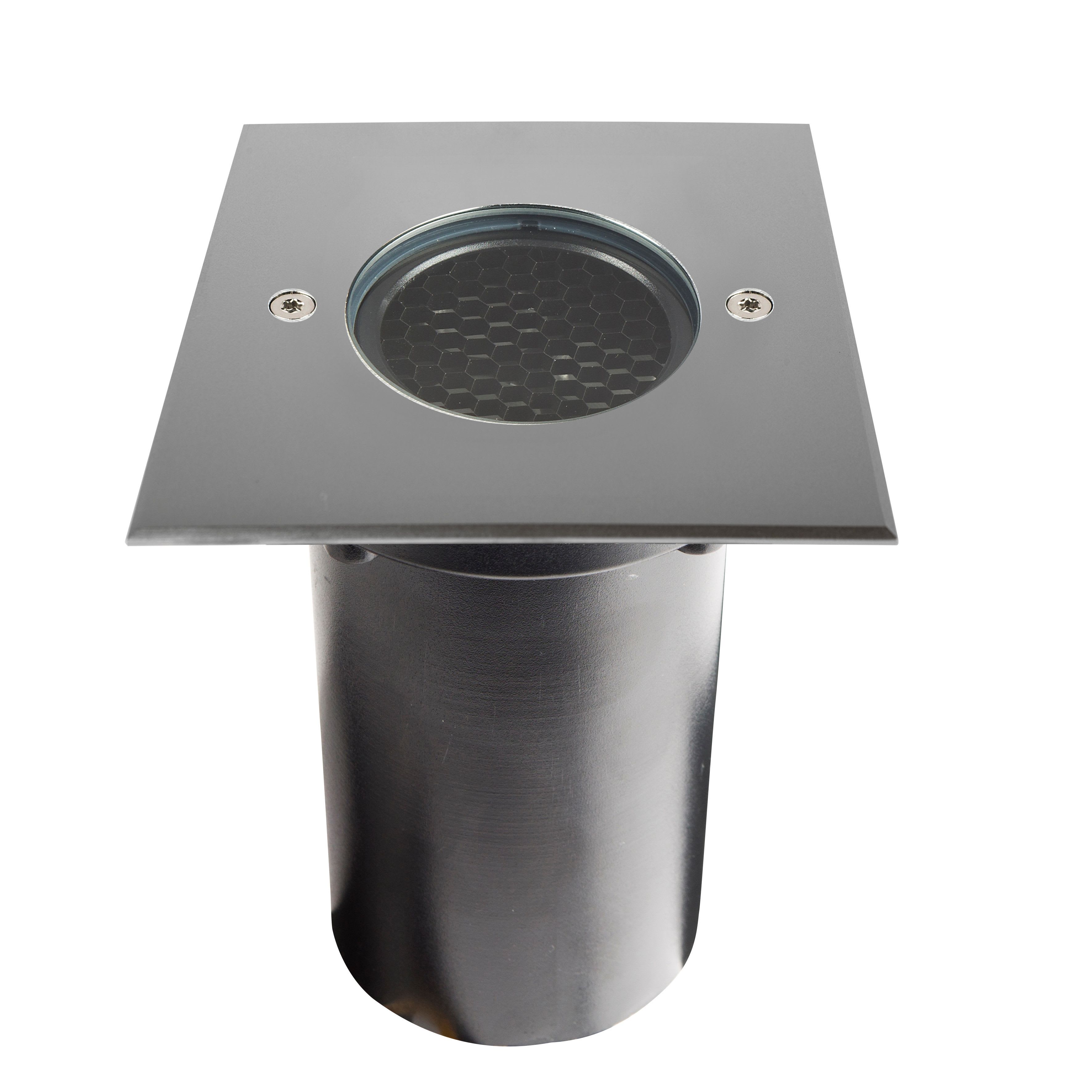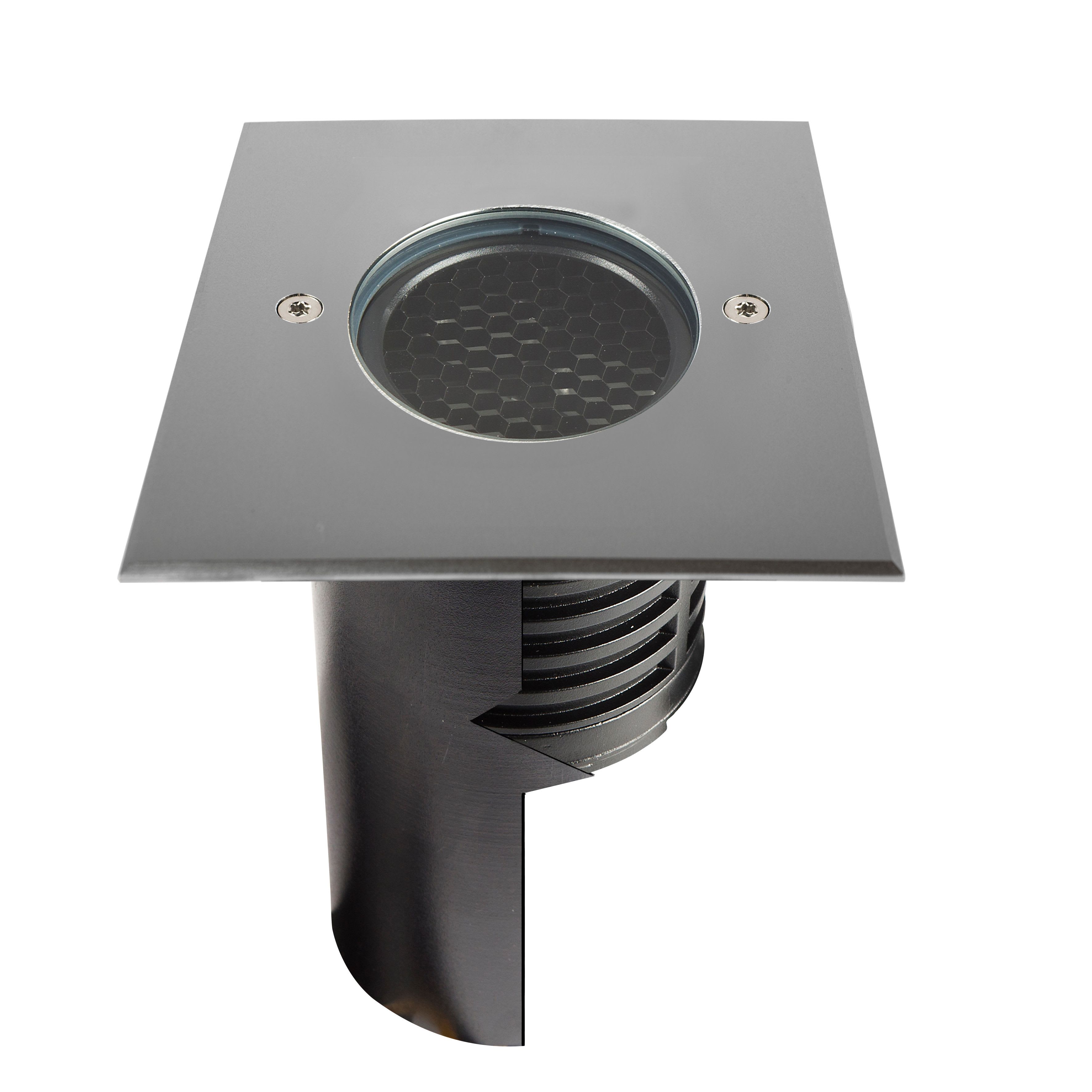 Encastré de sol EUROPOLE ZEPH 2 - 24 carré inox, blanc 4000K, IRC>80, 3x2W, 368lm (61lm/W), verre transparent/nid d'abeille basse luminance, angle 30° (éclairage), 24VDC. Classe de protection III, IP67, IK08, câblé de 0,5m avec connectiques rapides IP68 Plug & Play mâle et femelle, HO5RN-F 2x1mm². Durée de vie : 30000h. Dimmable : Oui, variation avec alimentation/contrôleur compatible (non inclus). Dimension collerette : 116x116mm. Diamètre d'encastrement : 96mm. Matériau : corps en aluminium/collerette et visserie inox 316L. Traitement de la surface : traitement de la collerette par passivation, corps traité anticorrosion. Résistance environnement : garantie corrosion 15 ans. Températures de fonctionnement : -20°C/+40°C. Walkover : Oui. Driveover : 1500Kg avec pot d'encastrement. Submersible : Non. Diamètre d'encastrement indiqué pour installation sans pot d'encastrement.