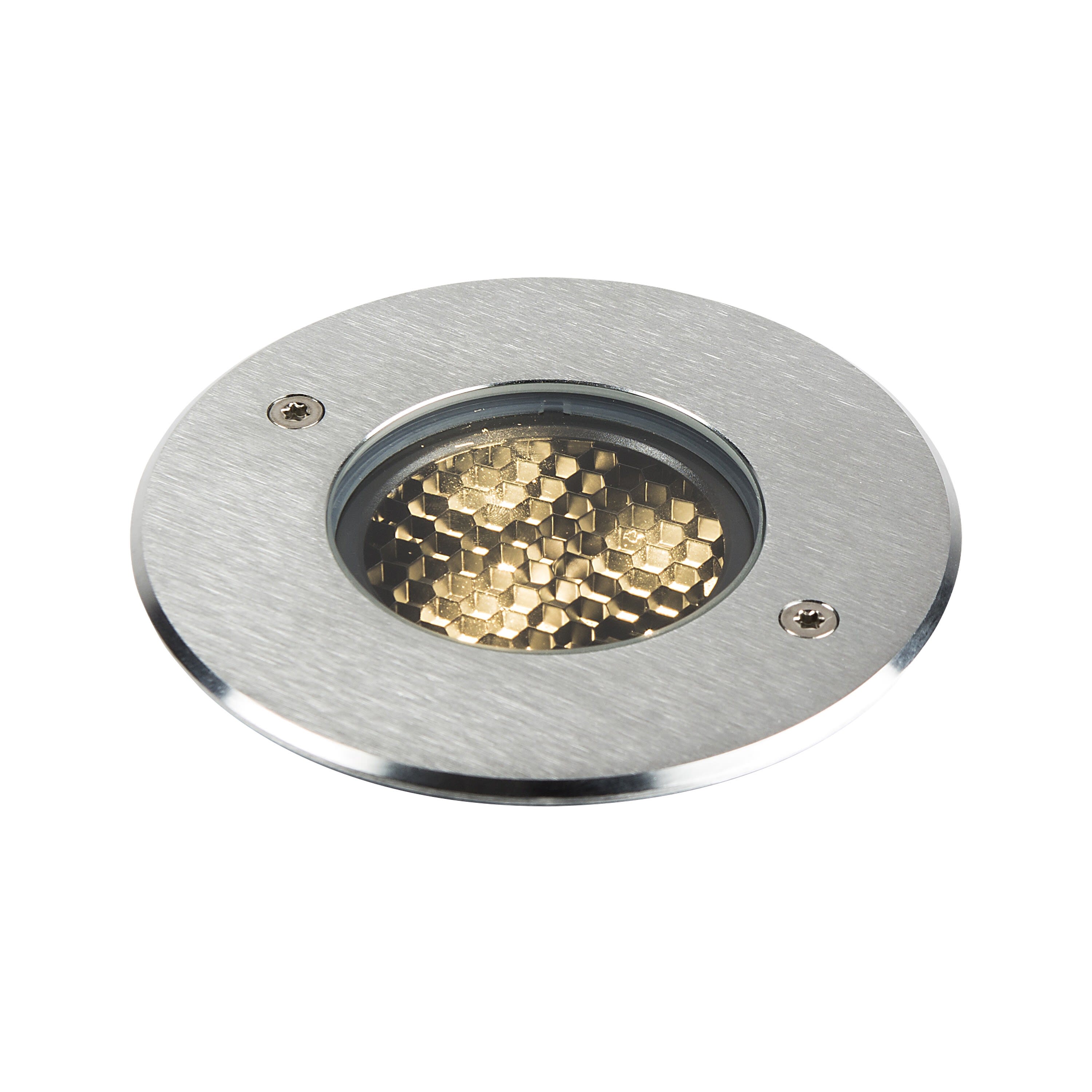 Encastré de sol EUROPOLE ZEPH 2 - 24 rond inox, blanc 3000K, IRC>80, 3x2W, 334lm (56lm/W), verre transparent/nid d'abeille basse luminance, angle 10° (éclairage), 24VDC. Classe de protection III, IP67, IK08, câblé de 0,5m avec connectiques rapides IP68 Plug & Play mâle et femelle, HO5RN-F 2x1mm². Durée de vie : 30000h. Dimmable : Oui, variation avec alimentation/contrôleur compatible (non inclus). Dimension collerette : diamètre 116mm. Diamètre d'encastrement : 96mm. Matériau : corps en aluminium/collerette et visserie inox 316L. Traitement de la surface : traitement de la collerette par passivation, corps traité anticorrosion. Résistance environnement : garantie corrosion 15 ans. Températures de fonctionnement : -20°C/+40°C. Walkover : Oui. Driveover : 1500Kg avec pot d'encastrement. Submersible : Non. Diamètre d'encastrement indiqué pour installation sans pot d'encastrement.