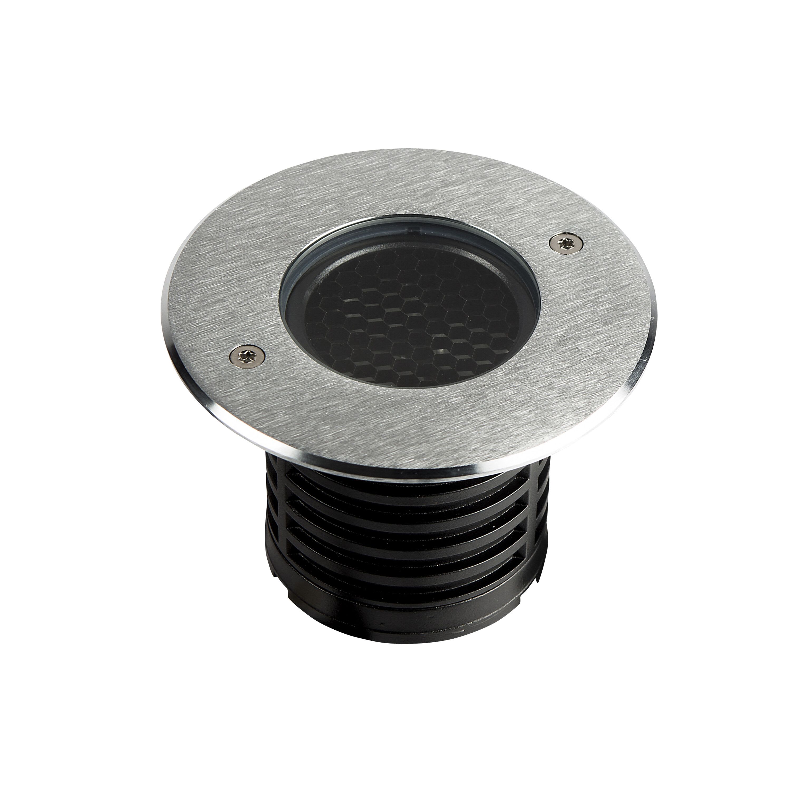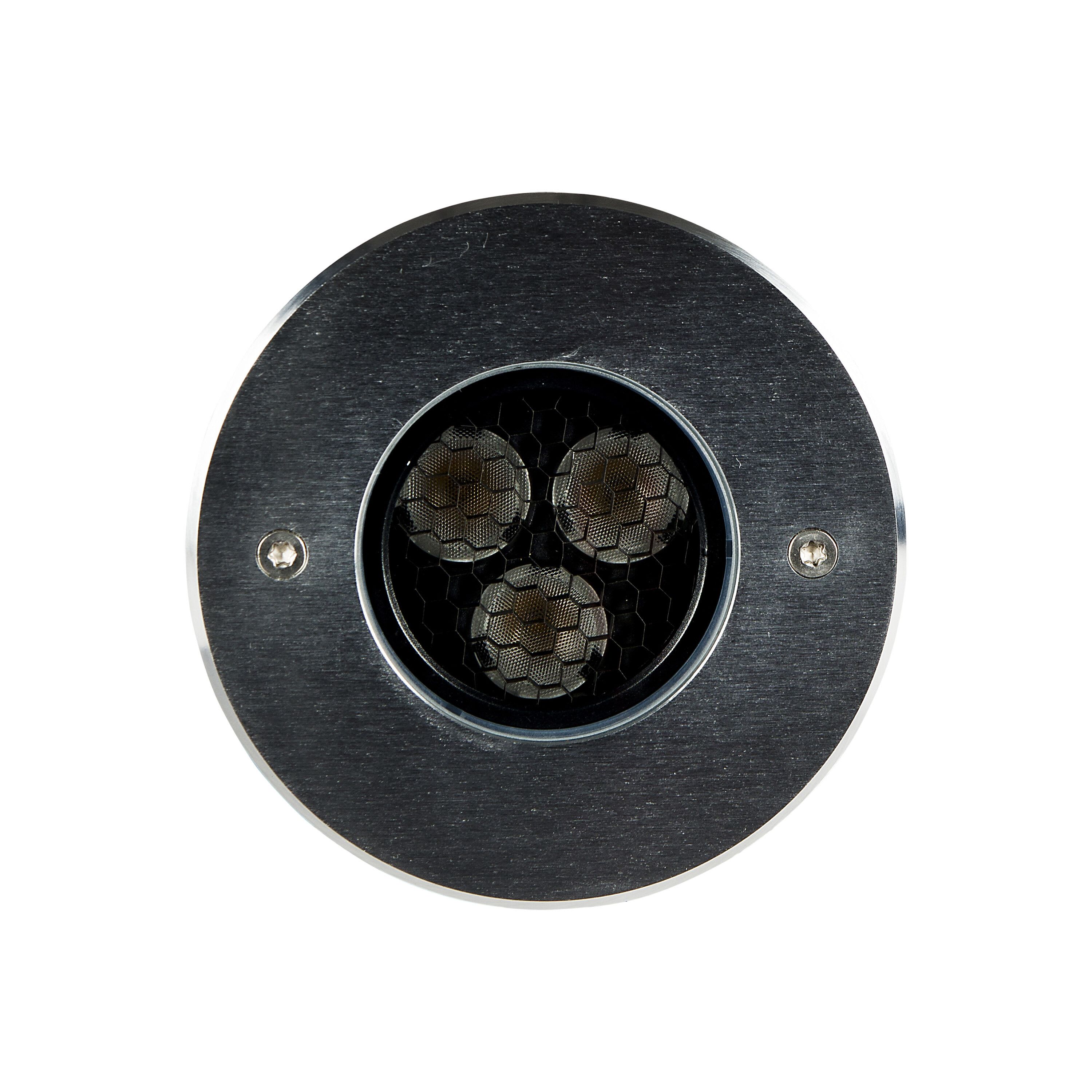 Encastré de sol ZEPH 2 - 24 rond : 116mm, inox, blanc 4000K, IRC>80, 3x2W, 368lm (61lm/W), verre transparent/nid d'abeille basse luminance, 30° (éclairage), 24VDC. Classe III, IP67. IK08. Dimmable.