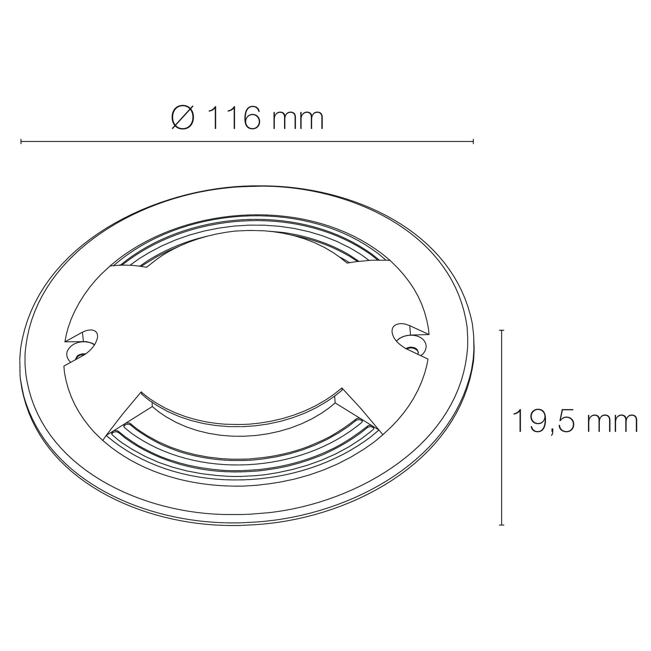 Encastré de sol EUROPOLE ZEPH 2 SLIM - 230 déflecteur double anthracite, collerette percée, blanc 4000K, IRC>80, 3x2W, verre transparent/nid d'abeille basse luminance, 230VAC. Classe de protection I, IP67, IK08, câblé de 0,5m avec connectiques rapides IP68 Plug & Play mâle et femelle, HO5RN-F 3x1mm². Durée de vie : 30000h. Dimmable : Non. Dimension collerette : diamètre 116mm. Diamètre d'encastrement : 100mm. Matériau : corps en aluminium/collerette et visserie inox 316L. Traitement de la surface : traitement de la collerette par passivation, corps traité anticorrosion. Résistance environnement : peinture résistante aux brouillards salins 1000h. Températures de fonctionnement : -20°C/+40°C. Walkover : Oui. Driveover : Non. Submersible : Non. Installation uniquement en encastré dans terrasse ventilée. Alimentation déportée incluse.